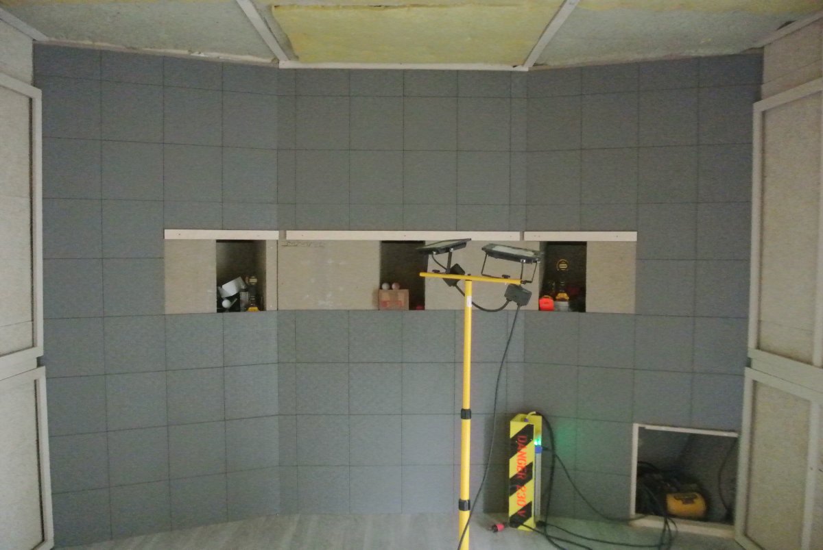 psb_87 wrote:Source of the postDr Space wrote:Source of the post Control Room: This week the bass traps at the rear where completed, the front wall was tiled, the wood floor panels put in, the fabric frames for the walls (they do the ones for the ceiling tomorrow), the fabric arrived and that is about it.. Here are some pictures..