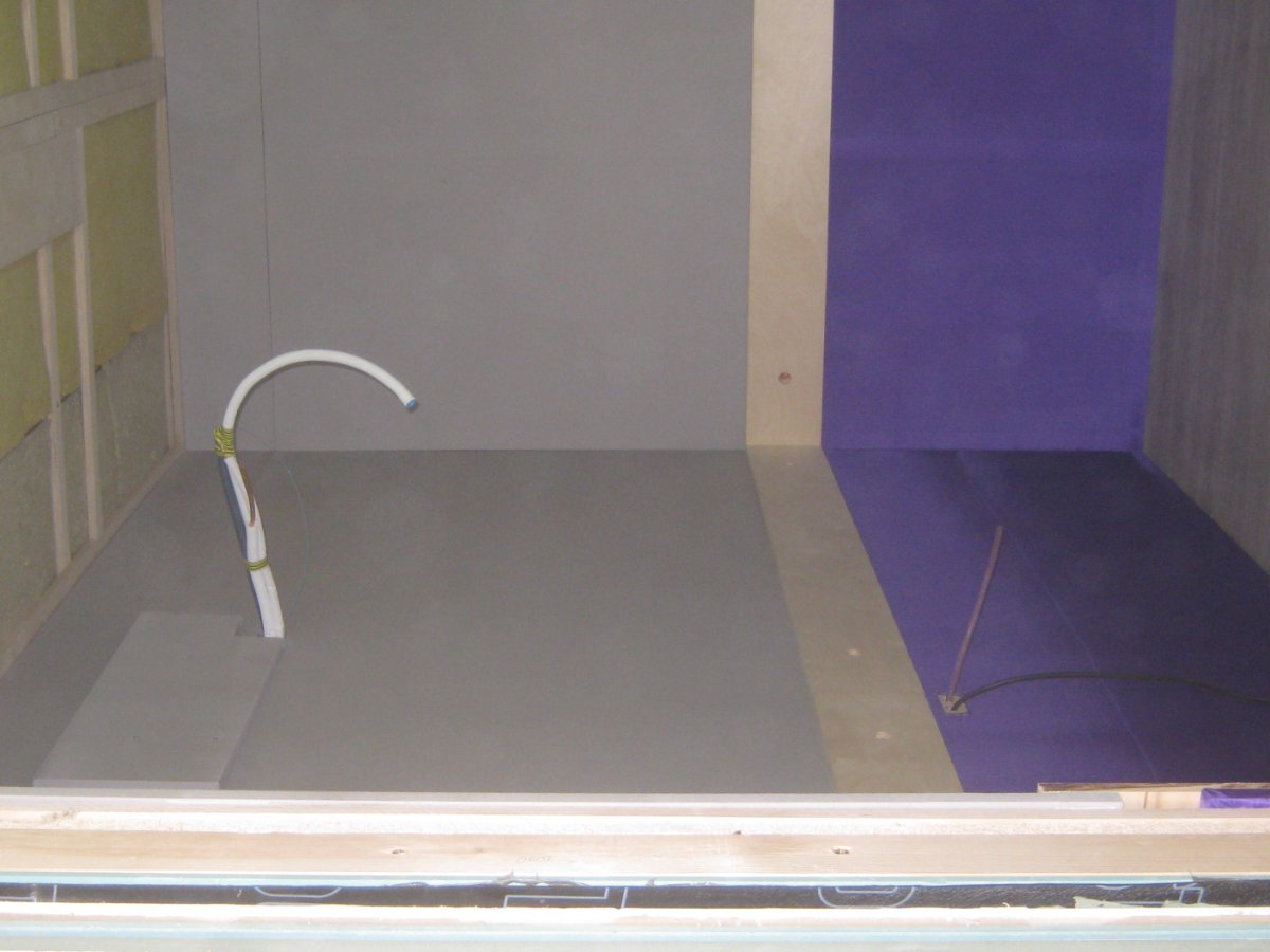 Well, Joules did not work at all this last week and has informed me they are not coming this coming week either. A bit frustrating as we are nearly half way there and this could soon be done. Anyway, the linoleum floor for the live room is supposed to arrive on Tuesday. Doors for the control room and live room should come the week after. The HVAC people were to install the first week in March but since Joules has not worked all last week or this coming week, there is no ventilation materials put in by Joules yet. Also the door frames have not been adjusted as they were supposed to. Just have to be patient..