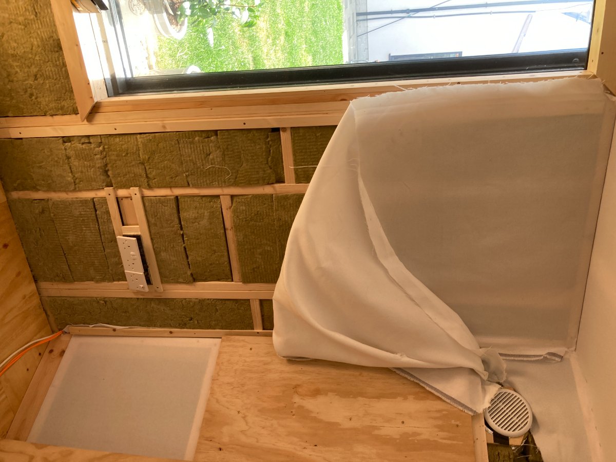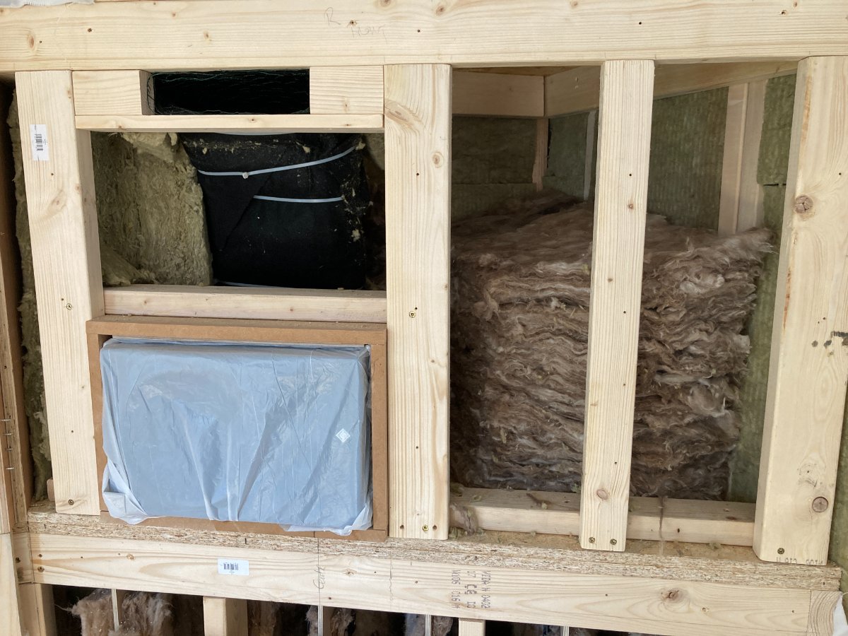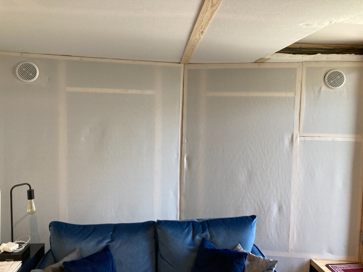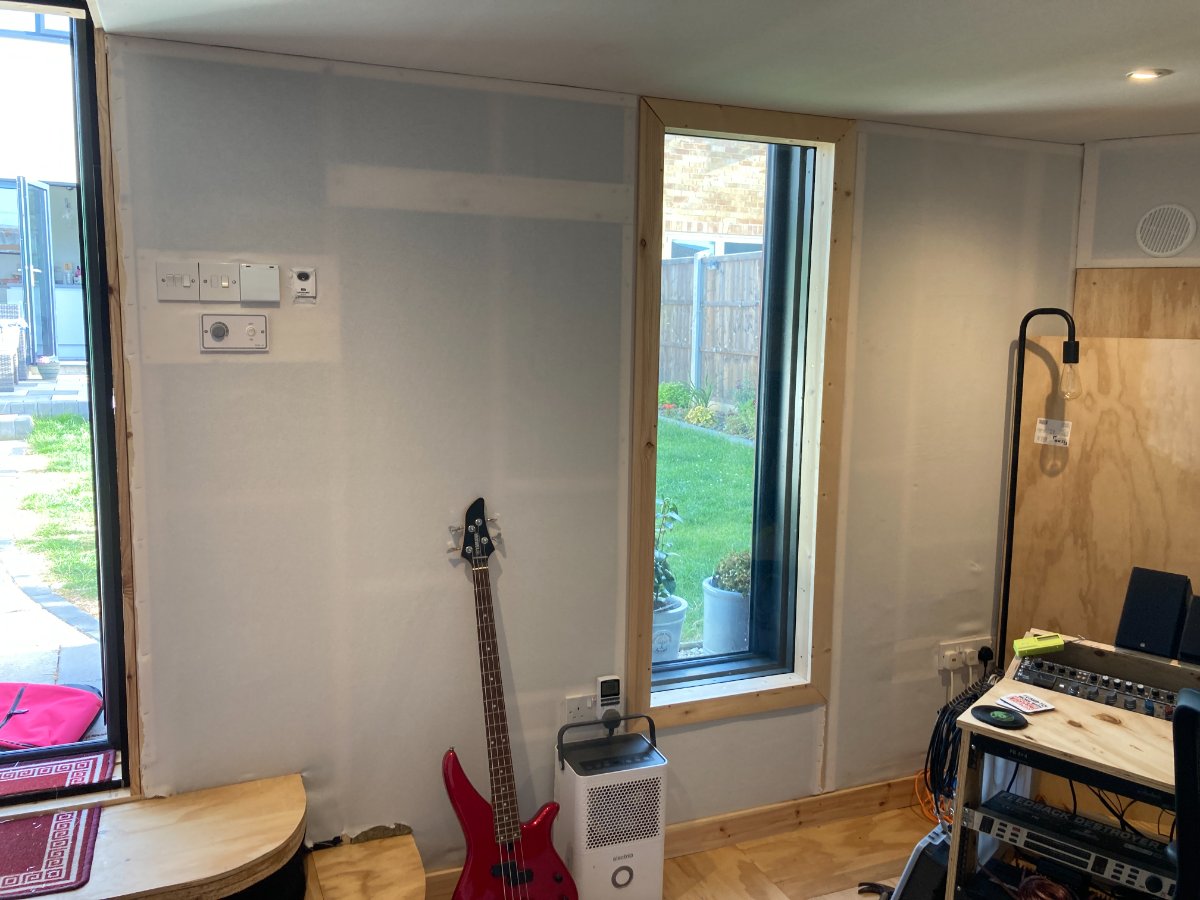 After that preparatory work I had supporting wood on the walls and ceilings ready to affix my reflective panels to, rockwool in all the walls to absorb as much as possible, and cosmetic work mostly complete.