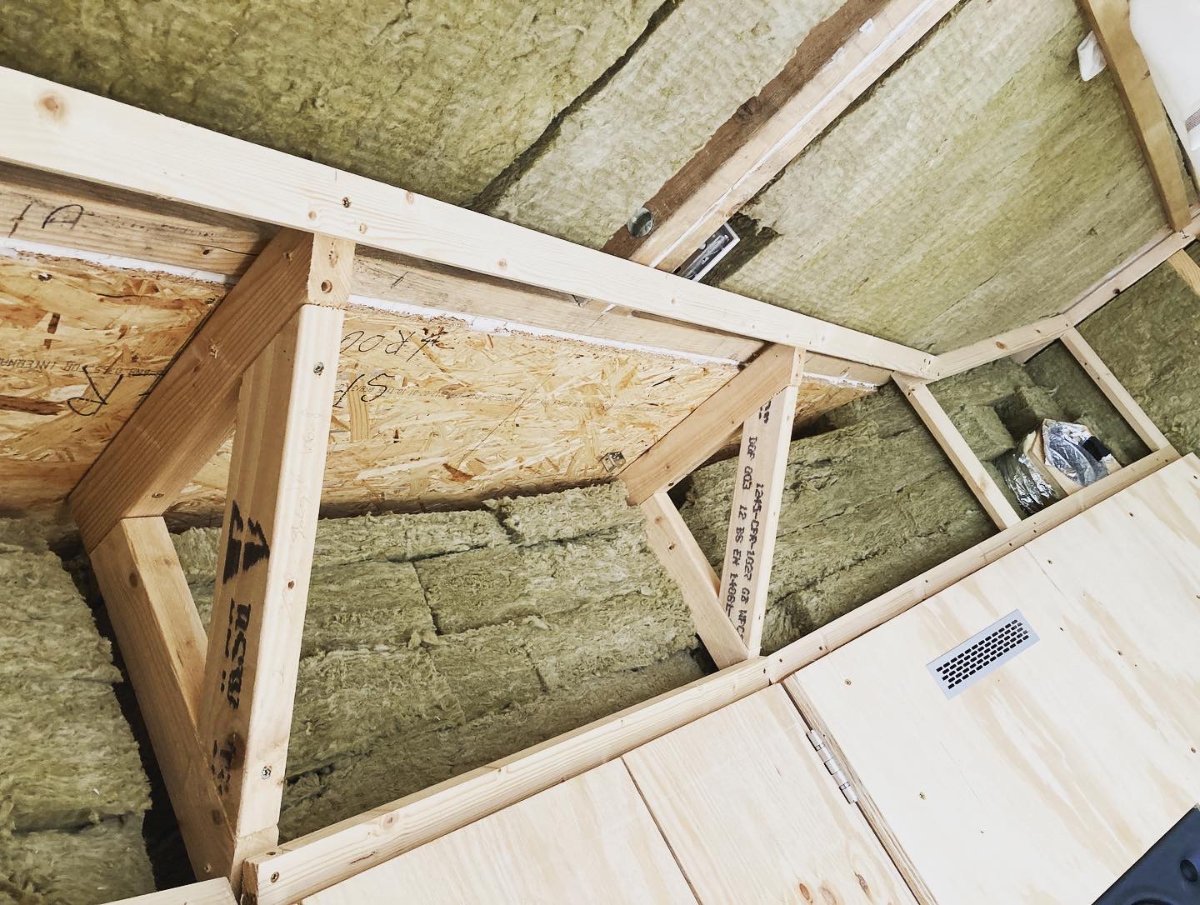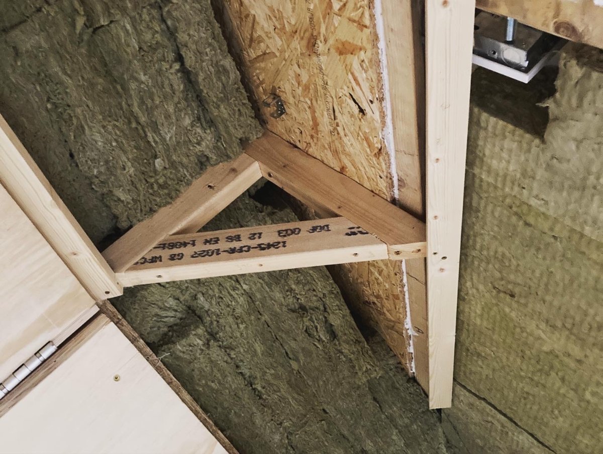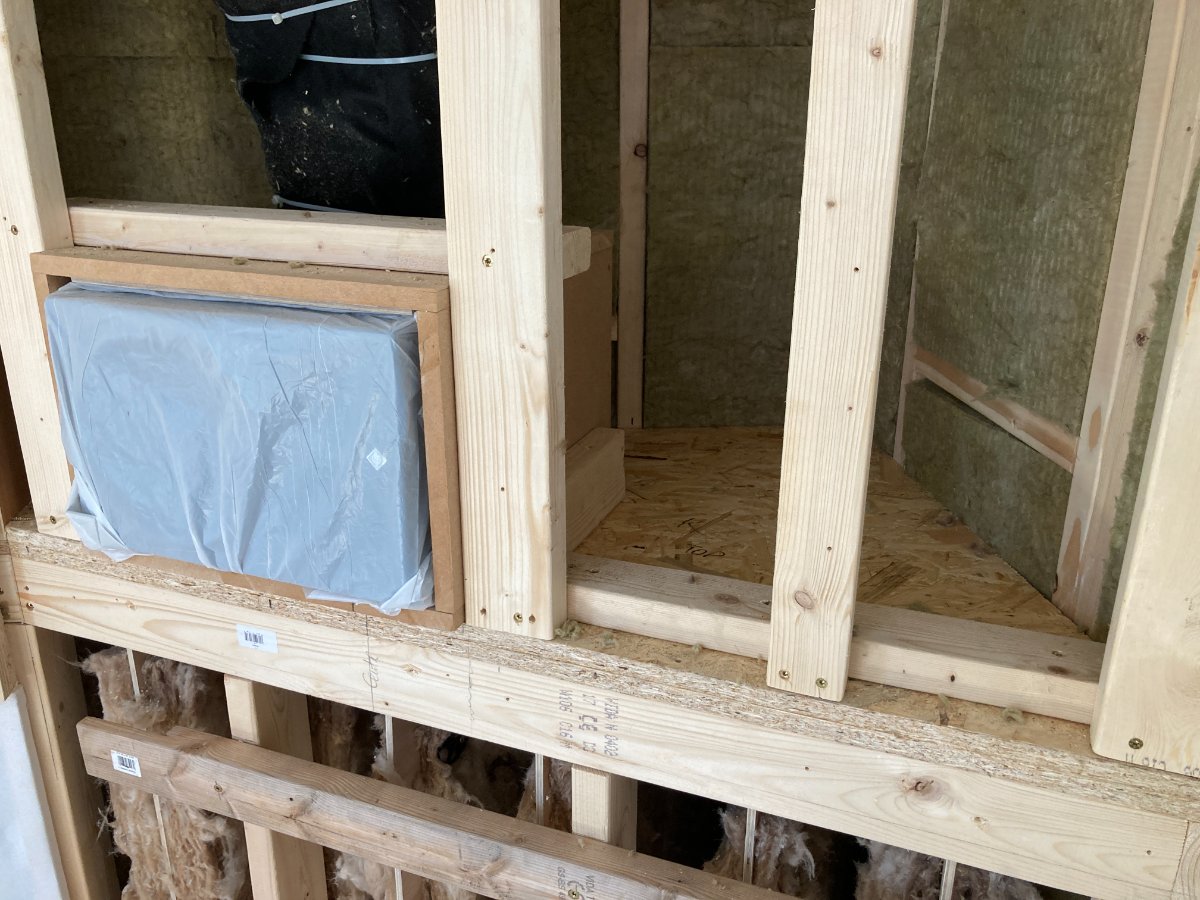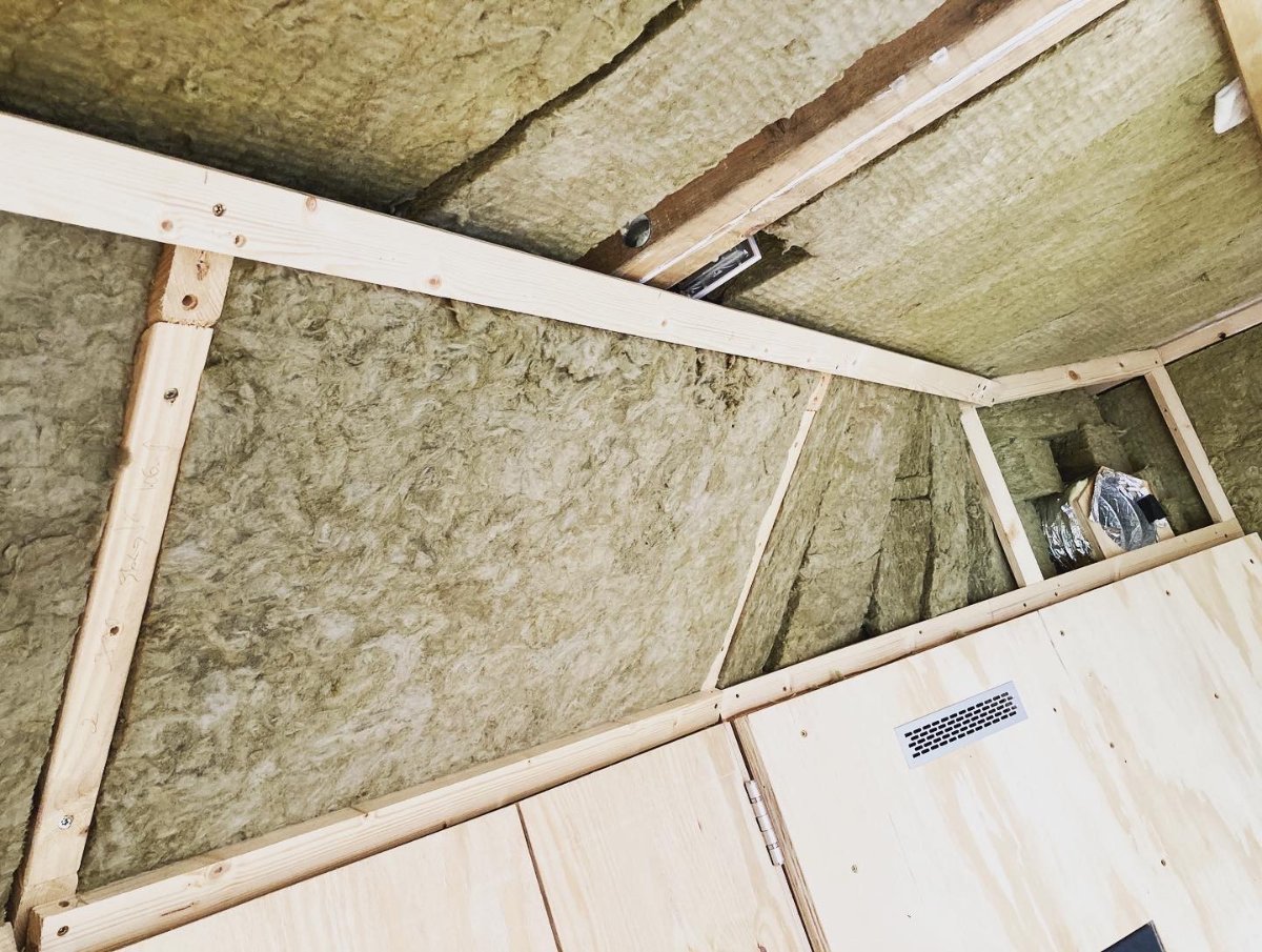 After that preparatory work I had supporting wood on the walls and ceilings ready to affix my reflective panels to, rockwool in all the walls to absorb as much as possible, and cosmetic work mostly complete.