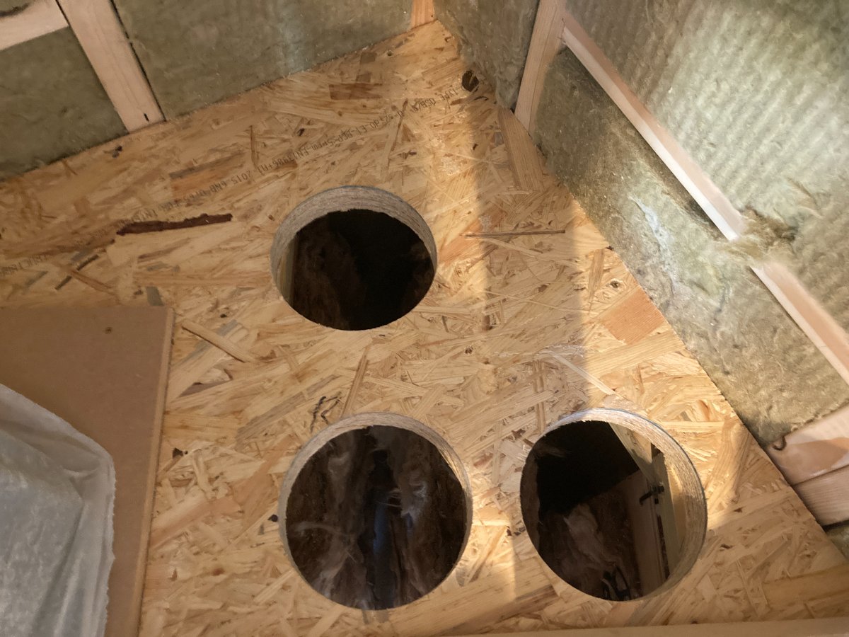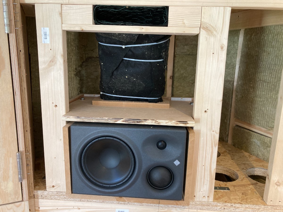 The first step was to take apart those walls to implement a redesigned speaker mount, create more air flow between the cavity behind the soffit fronts and the lower cavity and add more mass to the soffit fronts. The aim was to reduce speaker vibrations from reaching and actuating the soffit walls.