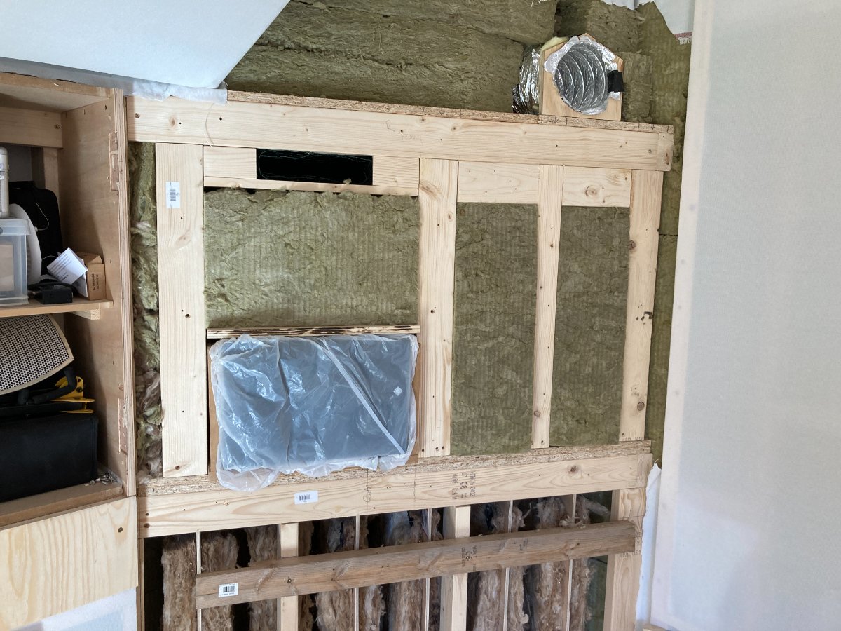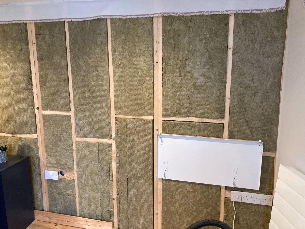 Then I needed to fill all the stud bays with rockwool, which made the room really odd sounding to talk in – a bit like I would imagine it would feel like to have your mouth filled with cotton wool!