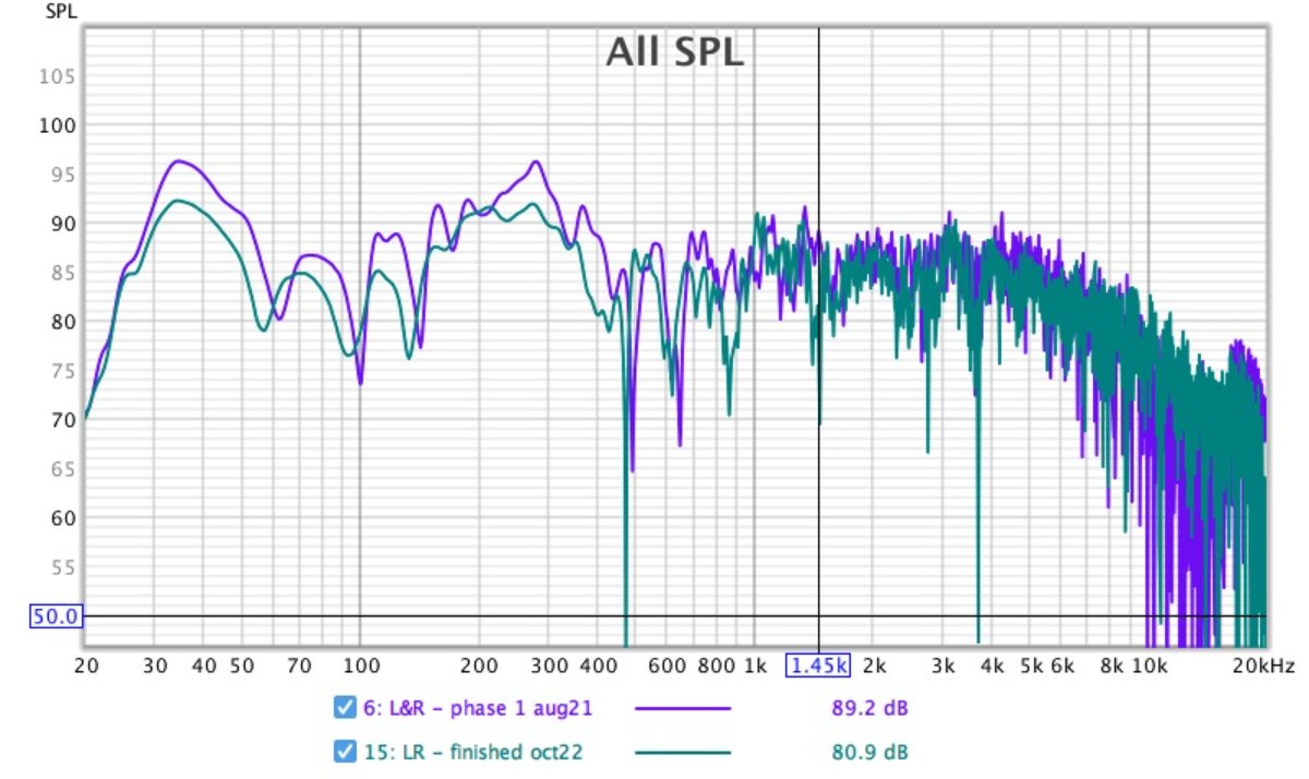 The two REW files are below - the one called 'Gareth Oct22 tweaks tuning' shows the effects of the FBQ box, whereas the other has all of the steps getting up to this point.