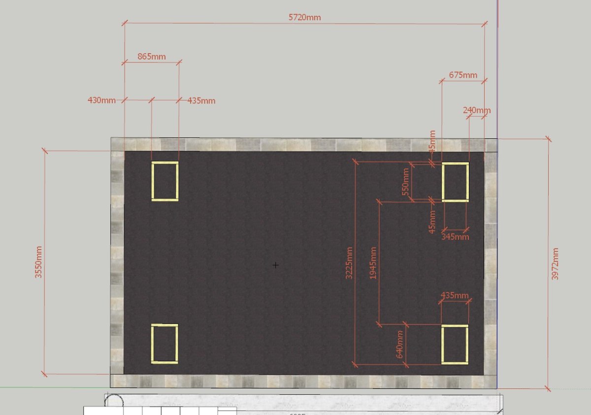 Hi Stuart, I’ll reply fully later... to update the accuracy the measurements for opening locations, I gave measurements to the inside face of the wood shutter, the drawing shows the outer face.
