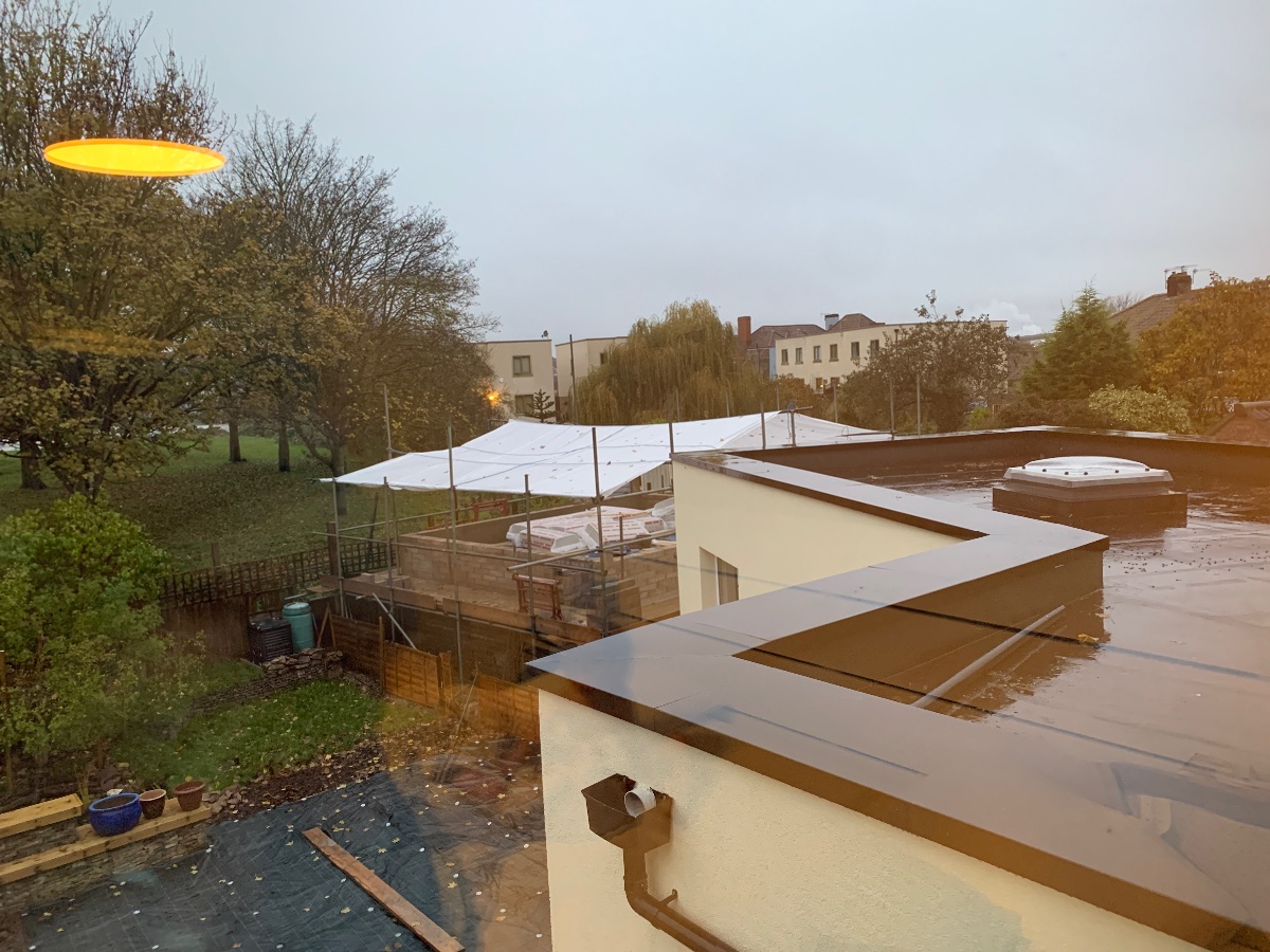 Update later! About to go out to seal the walls and get the Rockwool in before removing the scaffold cover during the slight sleet that we have now to get the beams delivered : )