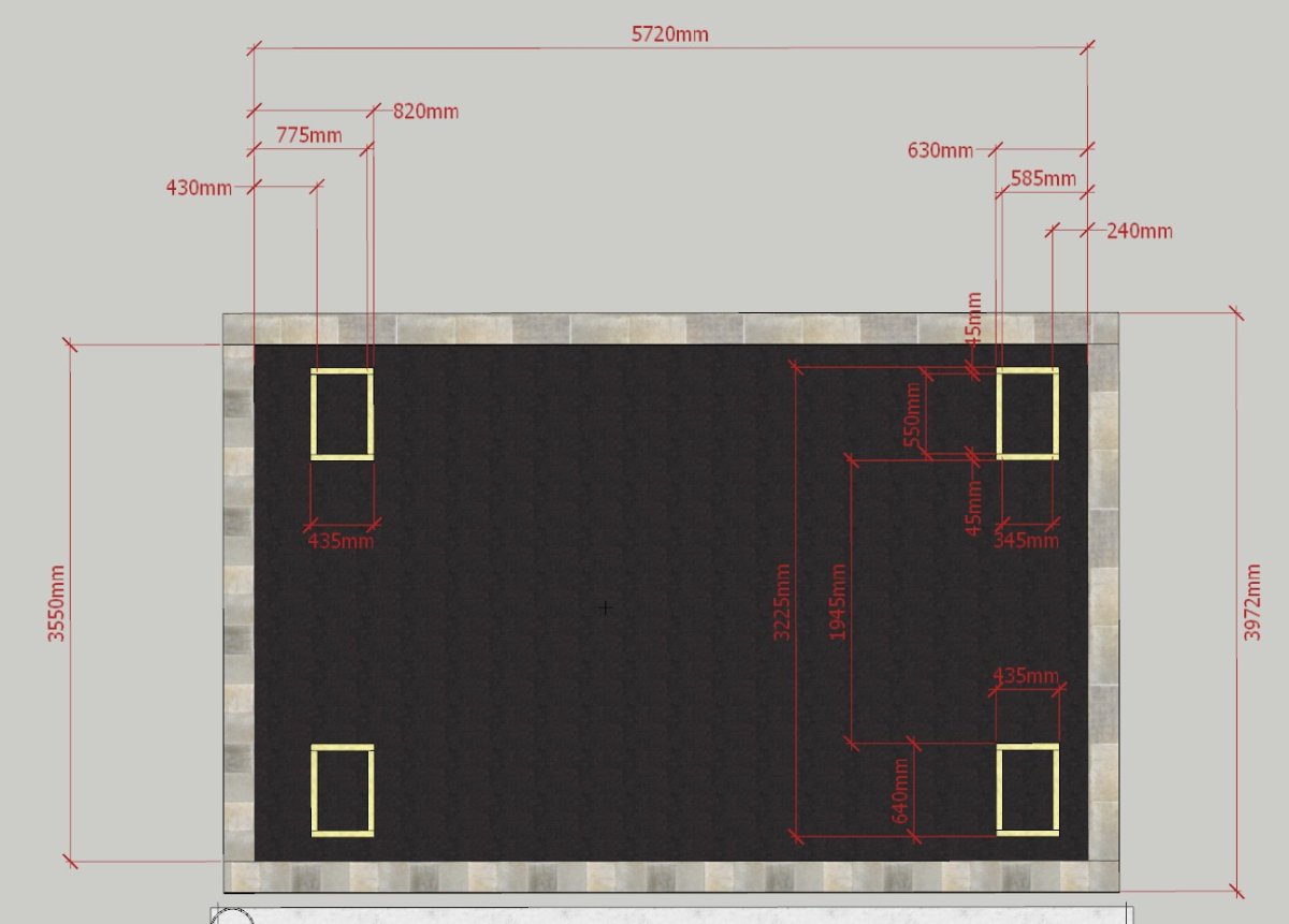 The image above is correct for location and sizes. I imagine the silencers may be about 130-150kg... we’ll find a way to get them there. I don’t think there’s going to be enough room up there to construct. I’m planning to have the mdf cut to size then we assemble on site.