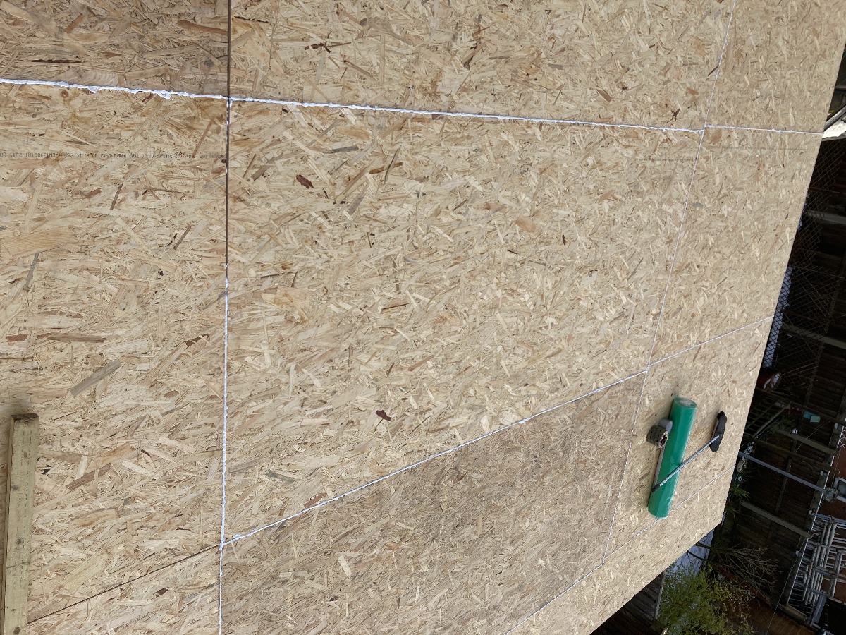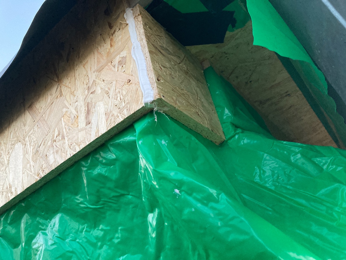 I did one layer of OSB today and caulked the gaps, and will add a second tomorrow.