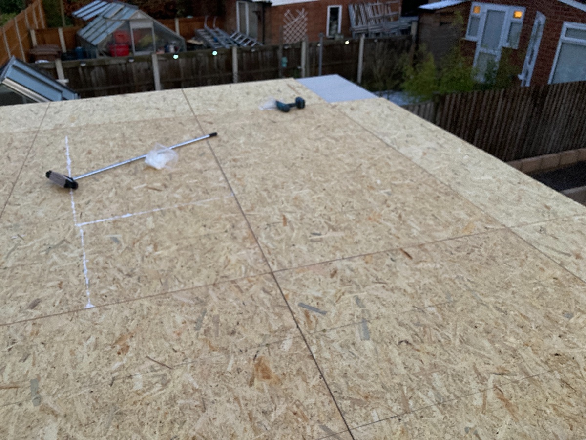 Today I finished the second layer of OSB around the rear soffit and fascia and had the first nail gun problem - I managed to put two nails through my EPDM roof rubber!! Idiot. I ‘think’ I have enough spare to be able to trim off the two holes I’ve made as luckily they’re close to one corner. Thankfully I haven’t yet glued this stuff down.