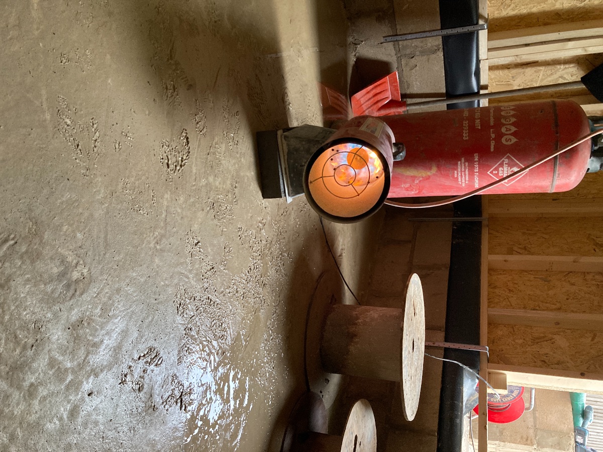 I’ve also borrowed a friend’s space heater to dry the place out, having already removed around 300 litres of water off the top of the slab!