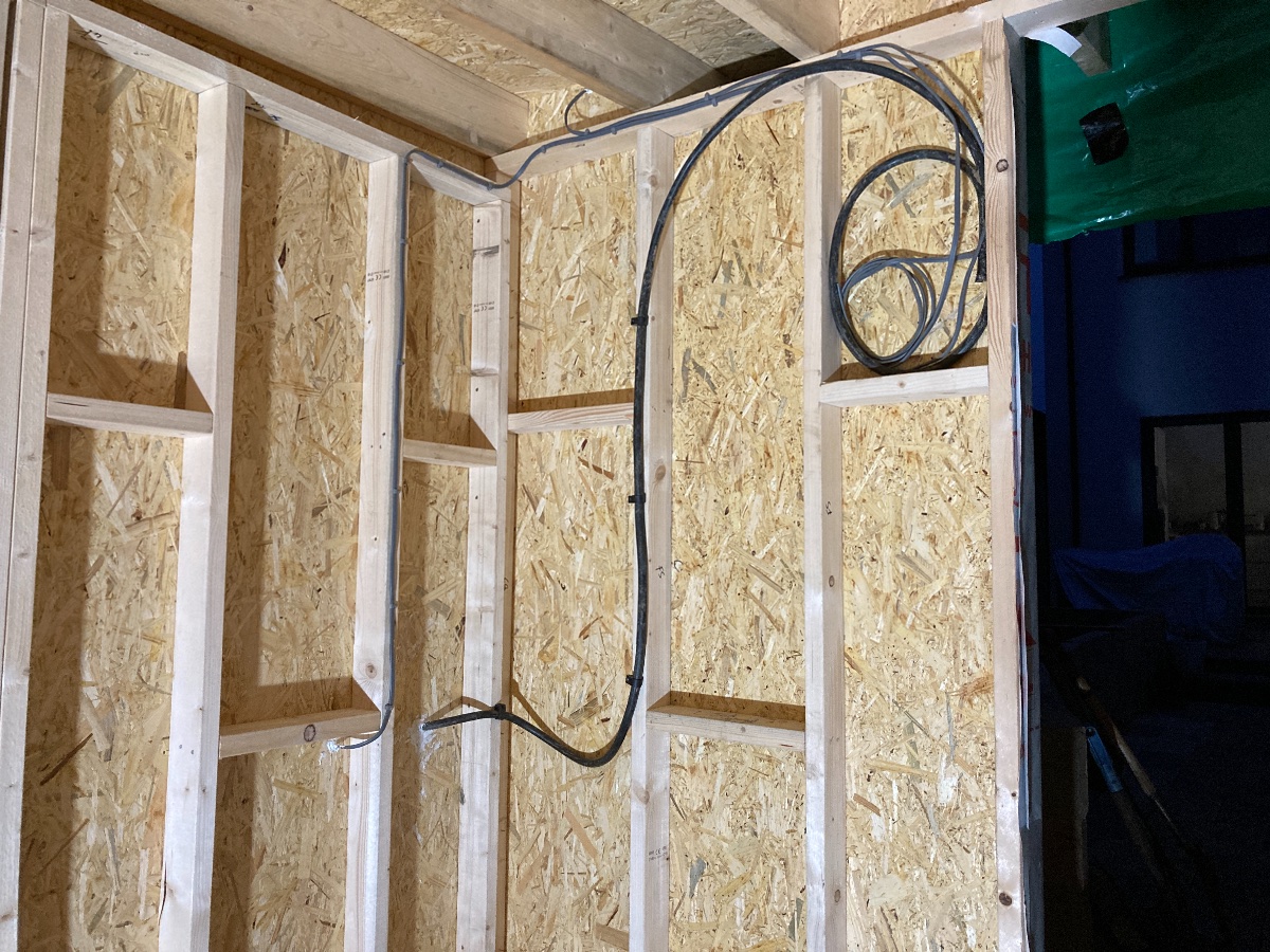 Insulation arriving Monday so I have the weekend to get the stud bays caulked (if my new caulk arrives) and the few cables to outside (lights at front, power and data in) routed.