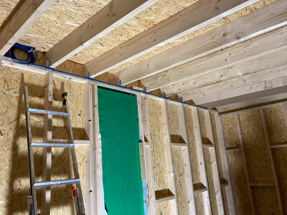 Question: does anyone on here know about UK regulations for wiring? As I’m building inside out walls I will be running the wiring on the inside side of the plasterboard, attached to the studs. I assume I need to use the round plastic conduit to protect the cable? I also realise this means the circuits might be downgraded current wise due to the cabling being surrounded on two sides by insulation.