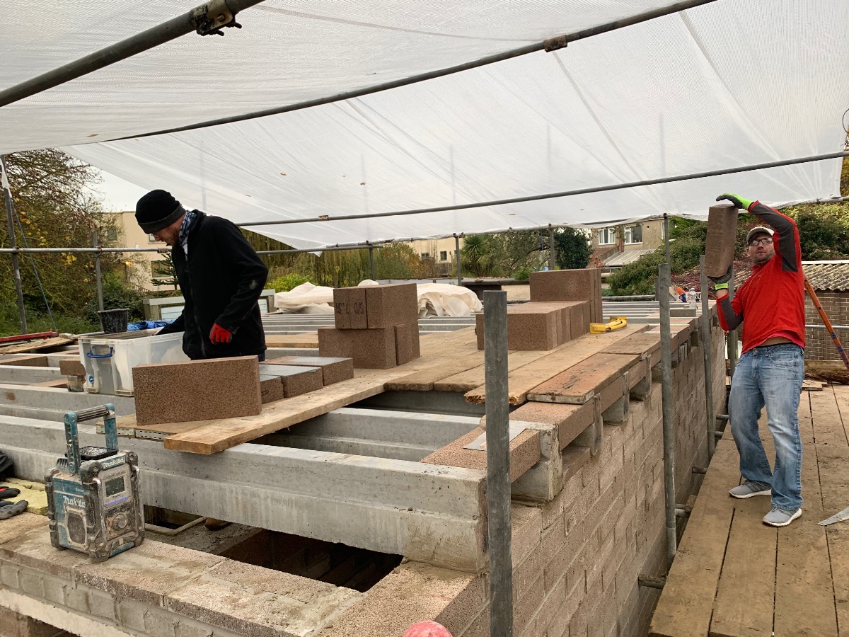 I was hoping to move the concrete contractor a few days ahead so we can make sure the conduit is exactly where we need it but they would reschedule 2 weeks or more away which would leave us with not a lot to do so we’ve been scrambling to finish the roof blocks, slurry the block and beam, build a single course of bricks to retain the thickness of the outer leaf, then get the Damp membrane, insultion and vapour membranes onto the roof, inner room and corridor!