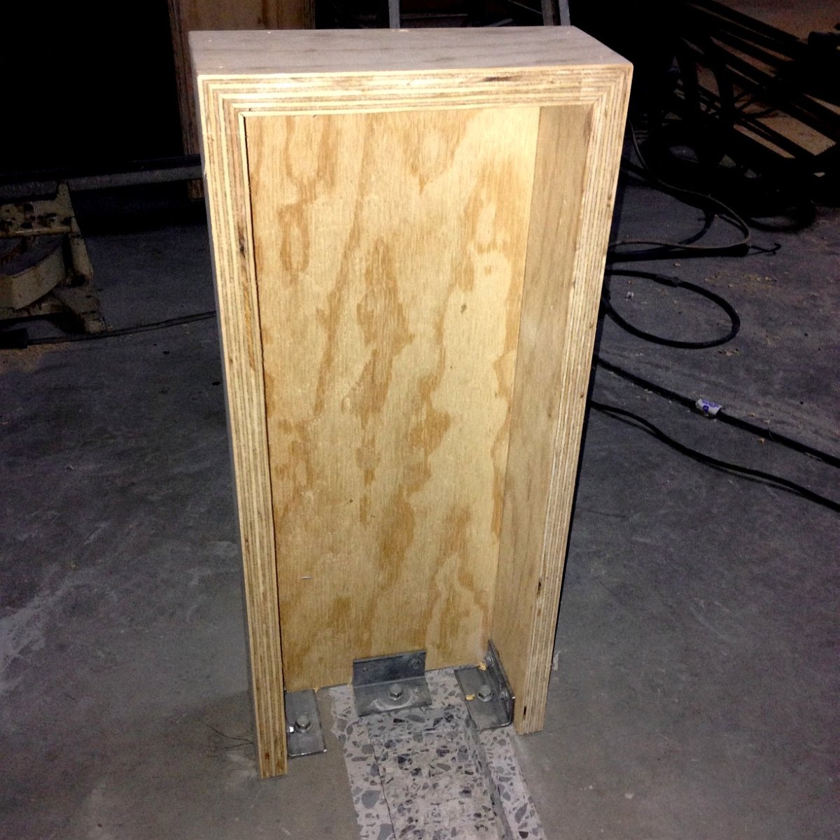 The wooden box in the second-last image is the desk leg, where the cables go up.