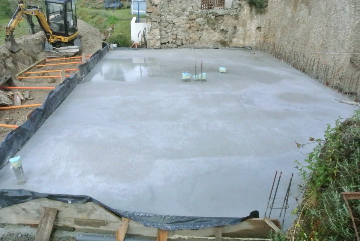 Slab is massive and solid!! Still a bit of a small lake on the top by where the door will be. This is not the floor so it is not a big problem.