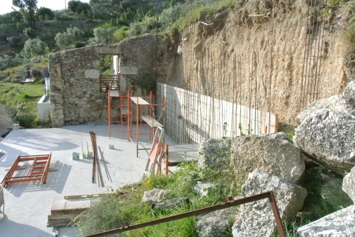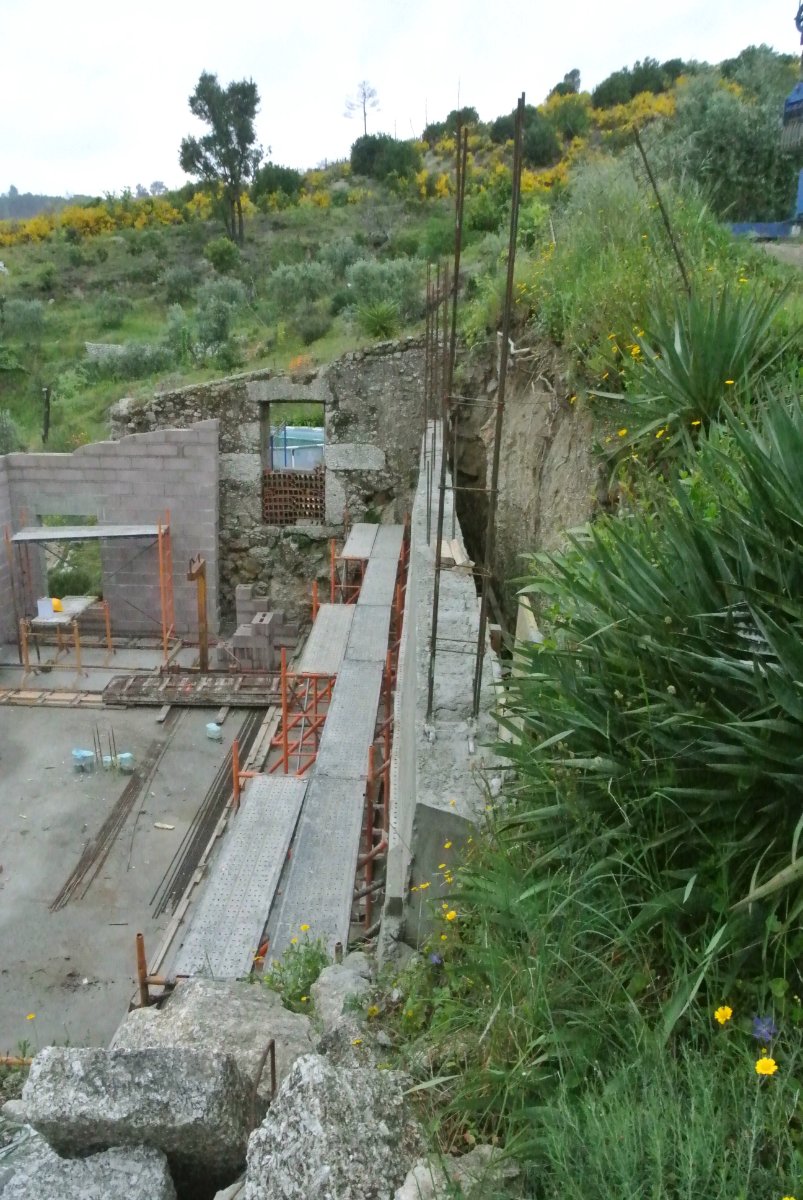 More progress on the retaining wall. The first pour is 3m. Then more shuttering and the last 2m after that. Then they will build a wall to the very top, which is around 7m. Paul said today the roof is 4.5m. I thought it was 5. They are still short about 6 metal shutters for make the complete wall in steel but Paul is pretty sure they will get them this week. No sign of the blocks yet. It is slow at the moment as there is so much steel to tie for the wall.