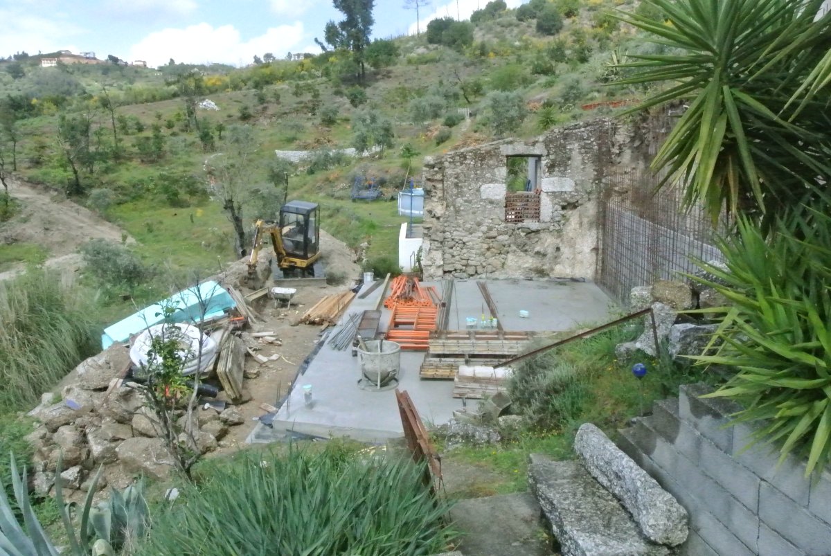 Guys showed up at the normal time and did the bits they needed to for the right corner. Concrete was delayed until 14 (they did not actually come til 15) so they worked more on the walls and window sills. Starting to go up at an angle now. Anyway, sadly, they only got the first 6m3 of cement poured and it looked like the wall was starting to bulge or bend out tiny bit in the middle so Paul made the call to not pour the rest. The risk was too high. We may end up having to pay for the 6m3 of concrete in the 2nd truck if they could not find another job to use it on. Damn.. Anyway, the last cement in the tube they used next to the wall where they will put some of the old ruin stones. Progress but a bit of a set back as on Monday, they will have to take down the front wall panels and supports and start over completely to do it again, so this is a bit of a set back, perhaps 3-4 days of work. Not sure..