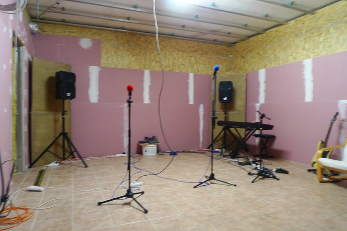 Wow.. walls are 2.5m wall now. They will be 3m in the front and 4.5m tall in the back. It looks like a big building now but I did some measurements on the inside and it is going to be a bit tight when bands are playing. The live room will be max about 4.8m wide and 6m long. Smaller than I had hoped and we will lose a few square meters in one of the corners for the storage room as well. I imagine that the drums will go in that smaller area near the control room window with the highest ceiling. It is so cool that I can really imagine what it will look like now.
