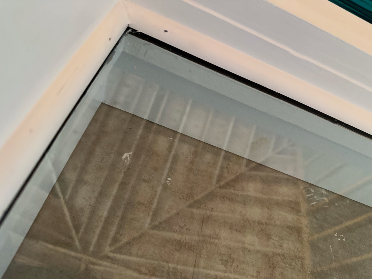 Lastly, after tacking the out stops in place I put another bead of caulk around the edge of the outer stops, and then another clear bead on inner edge against the glass.... Lots and lots of work. 1 down 5 to go.