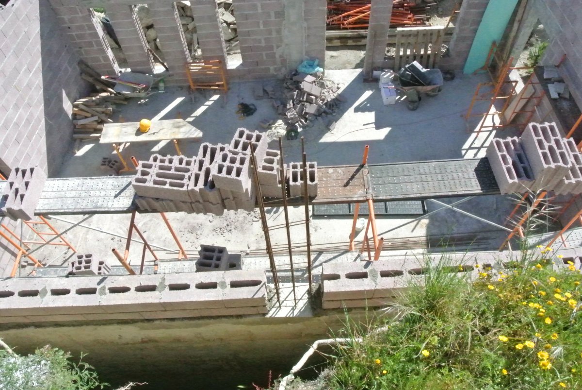 José has a bad shoulder so is slowed down quite a bit but they managed with Paul’s help to get all the metal shuttering off and the concrete cleaned off (big job). They swept and cleaned up the inside of the building and now are ready to finish the walls. Paul figures 3-4 days and all the walls will be done. He will look into the plasterboard on Monday while the guys do the walls. They lowered down some bricks so that they are ready to go.