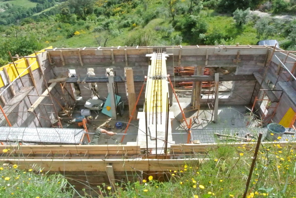 They stayed until nearly 19 last night and poured all the cement on the top of the walls and the central beam. Good job guys.