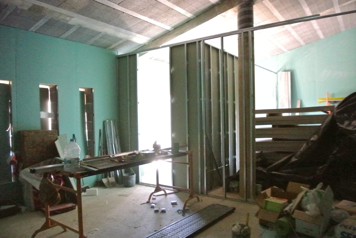 Paul gave me a quote for all the materials for building the interior walls. 105 plasterboards (normal) 105 plasterboard- weatherproof, 10,000 screws, joists for the suspended ceiling. Everything has two layers of plasterboard including the ceiling which will need to have connection every 50cm due to the weight. This is going to cost 4300€. Includes all the framing materials and rock wool, tape, caulking, etc.. Paul said that the windows are perhaps the last thing they will put in. He had not idea when they will deliver them. They can take months some times.