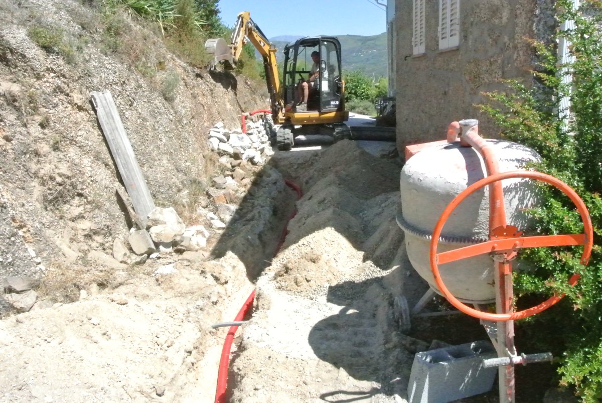 Paul showed up this afternoon and cleaned up a lot of the mess and flattened out the lands around the top of the building, dug a ditch to bring the electricity cable from the house to the studio. I forgot yesterday they also replaced a drainage pipe that was crushed by one of the cement truck loads. This was important as without it we had problems with too much water after heavy rains dirt washing out into our driveway. They take a week at another job and will be back on the 16th..