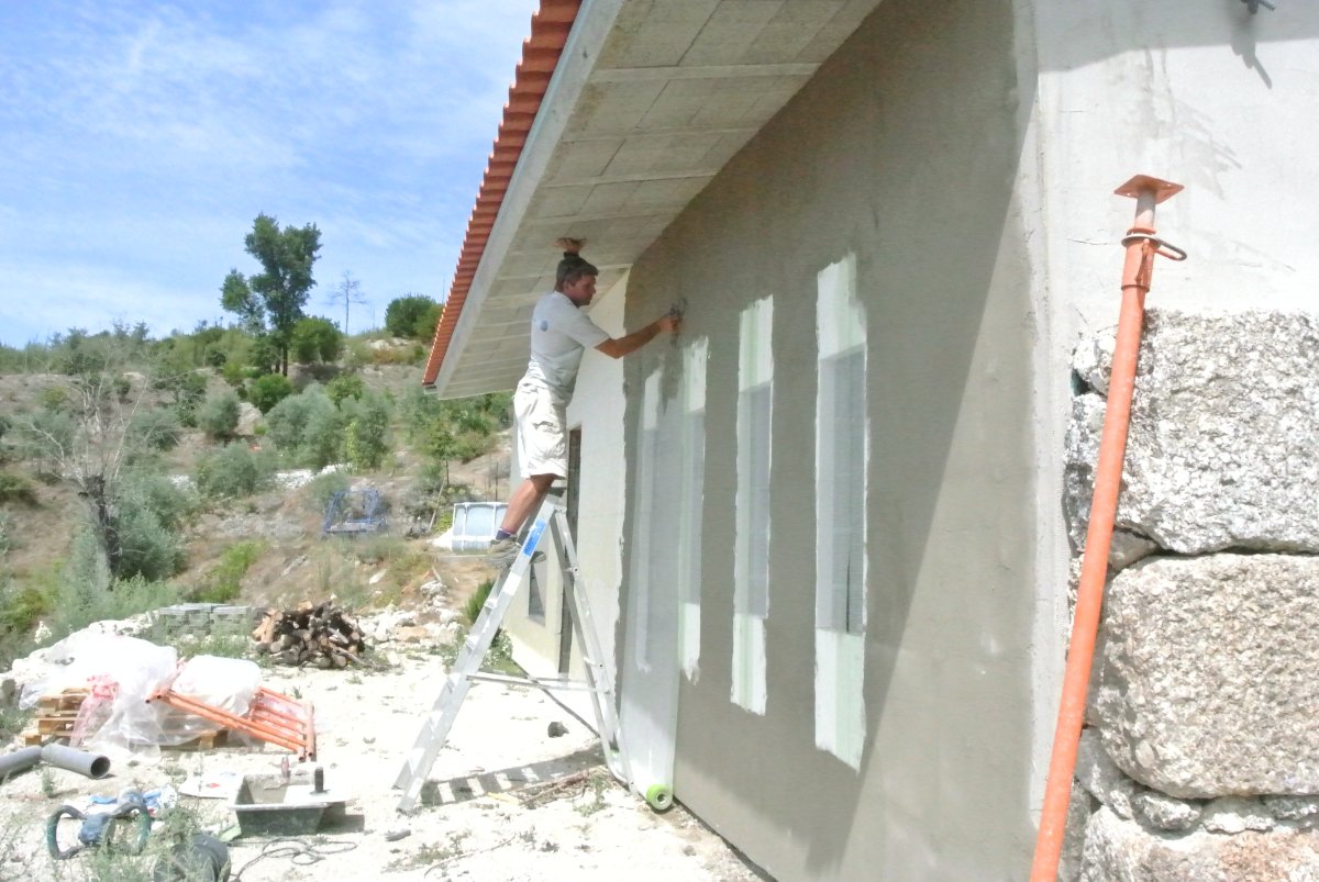 The architect finally came to see the building and he was pretty satisfied. He did say they should do the capouto soon on the front of the building as the insulation is turning yellow and getting soft. He also said that with the way the roof overhangs were done with metal, that this needs to be well protected inside the capouto otherwise the metal will rust and drip through and discolour the building. The roof overhang at the front also needs to have capouto all the way up to the blue insulation. He said this was very important.
