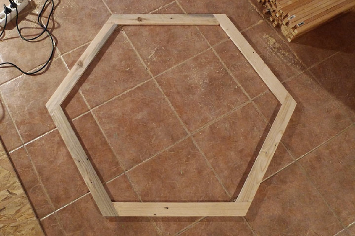 I have an idea for a more creative and inspiring ceiling that just an office type dropceiling. It will involve 7 hexagons. Here is a mock-up I made from an old pallet. We will see how these turn out as even the mock-up is not yet finished.