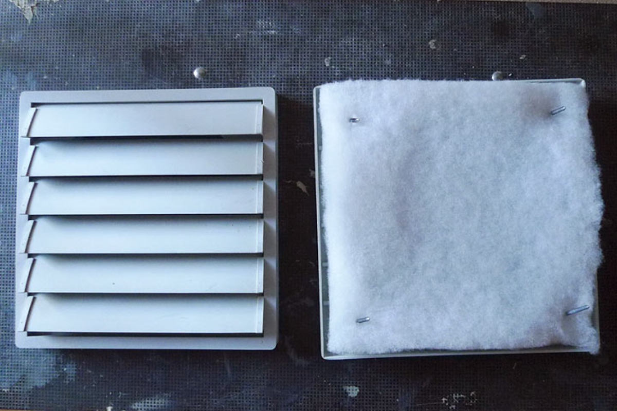 I cannot remember who was talking about filters for the exterior HVAC grilles. I couldn't find any so I cut two squares of polyester batting (not Dacron but the same stuff) to have some DIY filters, like this. My ventilator has filters but I want to stop insects from using the ducts as a place to make a home. For example, imagine if a wasps' nest filled and blocked a vent part way along a run; I would like to avoid having to dismantle the HVAC setup if I can.