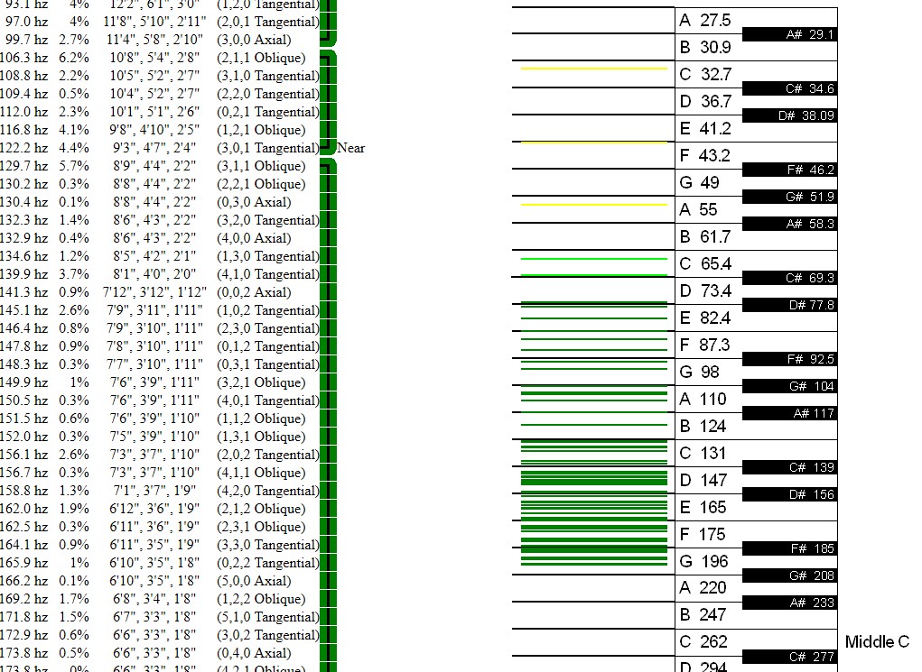 And your third major mode would be the one related to the height of the room, which is 8 feet /2.5M, and that works out to 71 Hz, or C2# on the bass guitar. Another four entire notes up the scale.