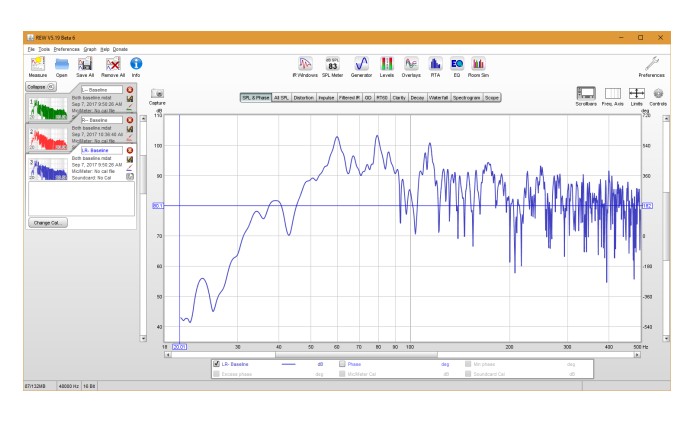 Then turn off the left speaker, turn on the right, and repeat the measurement step above. Do not change any settings! Once again, leave the room while the test runs. Name that measurement as "R-- Baseline ".
