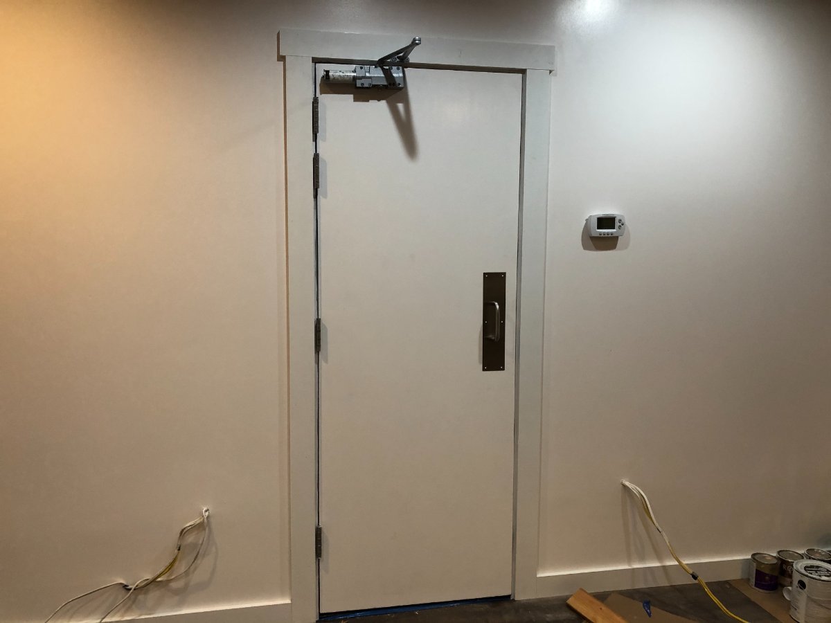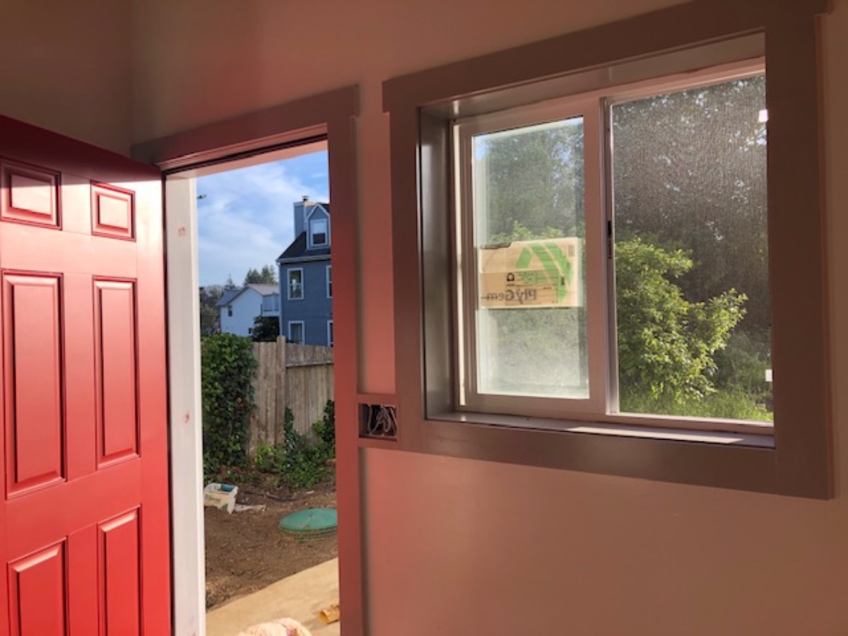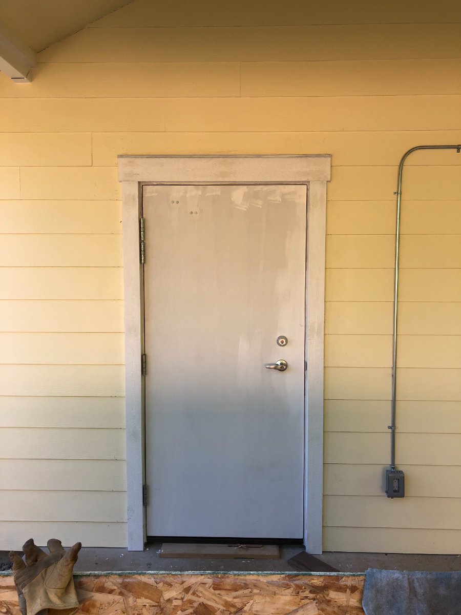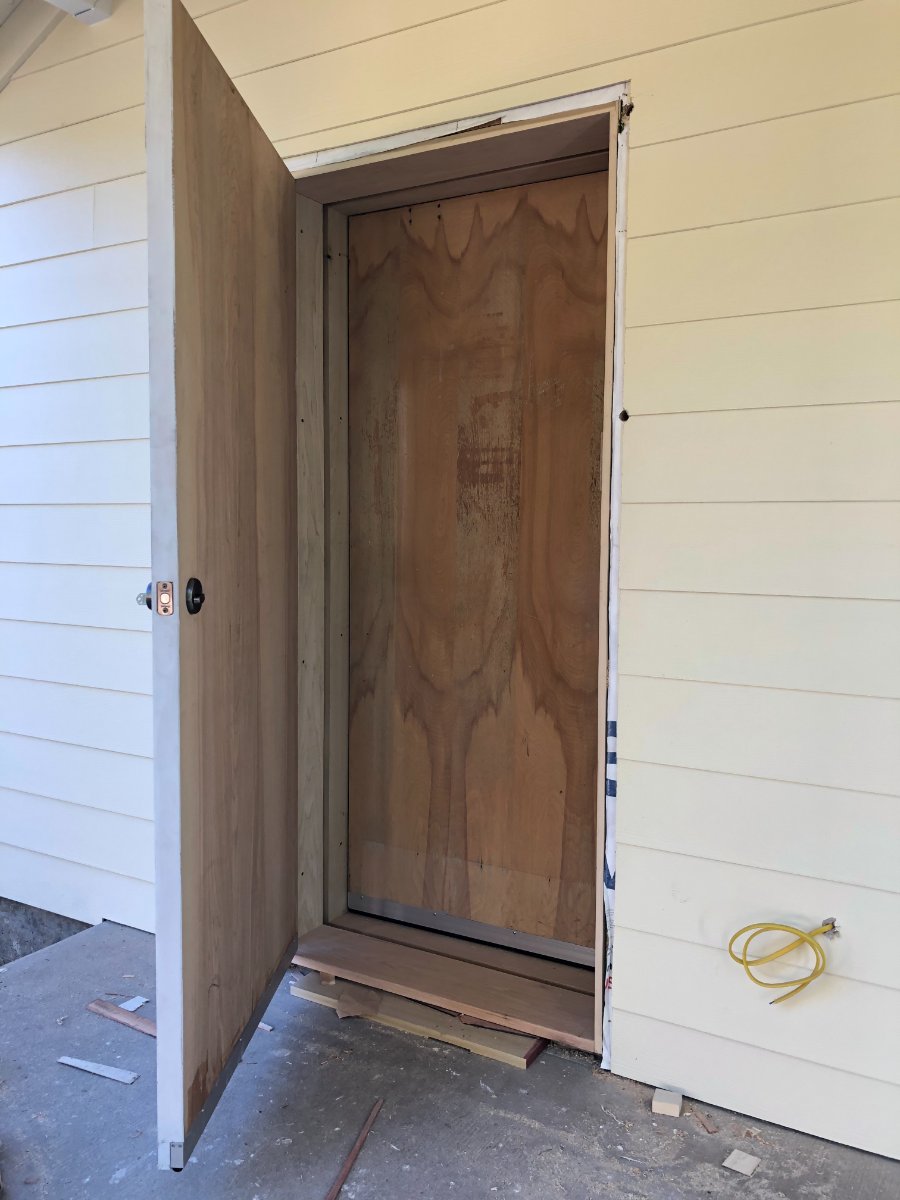 Time for doors. Started on June 4th. I hired Tom, a recommended local carpenter. Up until then I was using the GC's builders. The GC gave me a credit for four pre-hung solid core doors and 4 hours labor. Tom was $35 less per hour than the others. He also read and studied all of my door plans I sent him from a variety of sources. The other builders would not have had the patience for that. We still need to install the door closers.