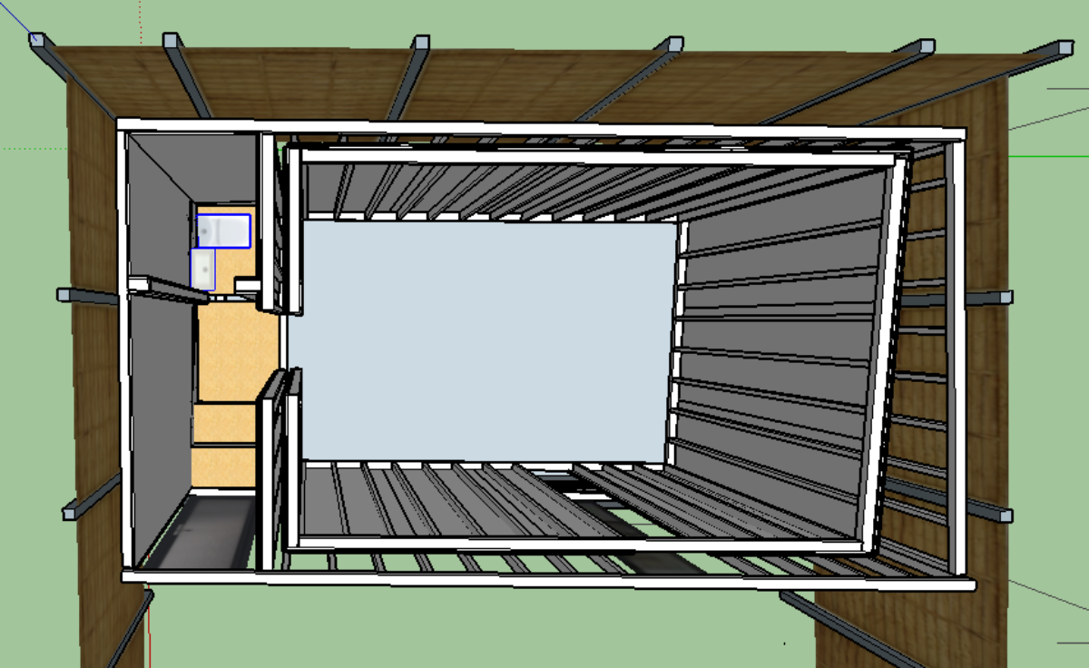 So, on to the questions and detail. At this point I'm interested in planning the construction method and exterior dimensions. I need to get back to the site to do some proper measurements before doing much in sketchup!