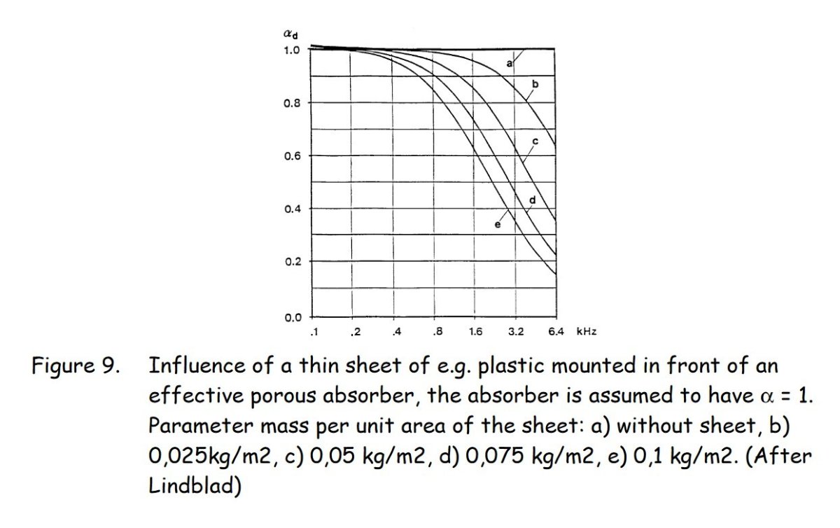 Jennifer gave a great reply there, so I'll just add this: Acoustically, plastic acts like a foil. It reflects some frequencies, and allows others to get through. The governing factor is the surface density of the plastic. The equation is:I think the main question I need answered right now (so I can confirm my fabric order) is whether or not the black plastic I linked to (see below) will be ok (acoustically) to use on the facing of the panels beneath the burlap?