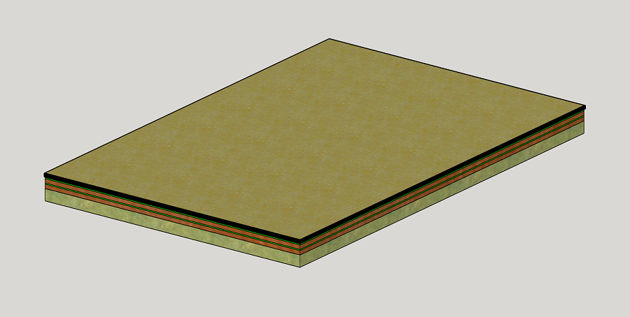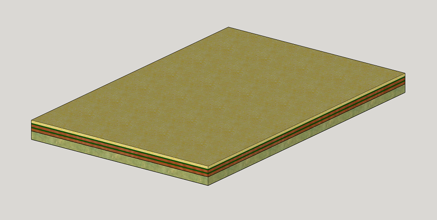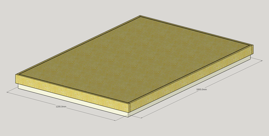 To recap, here are details of the riser construction. Top layer is 18mm plywood, middle and bottom layers are 18mm MDF. Insulation layer is 50mm Knauf RS45 Earthwool. It's the same as Glenn's design, but with 2 thin green glue layers applied as per Ted's quote. The layers will be glued together with wood screws spaced 400mm apart from centres. This is the 1800x1200mm riser;