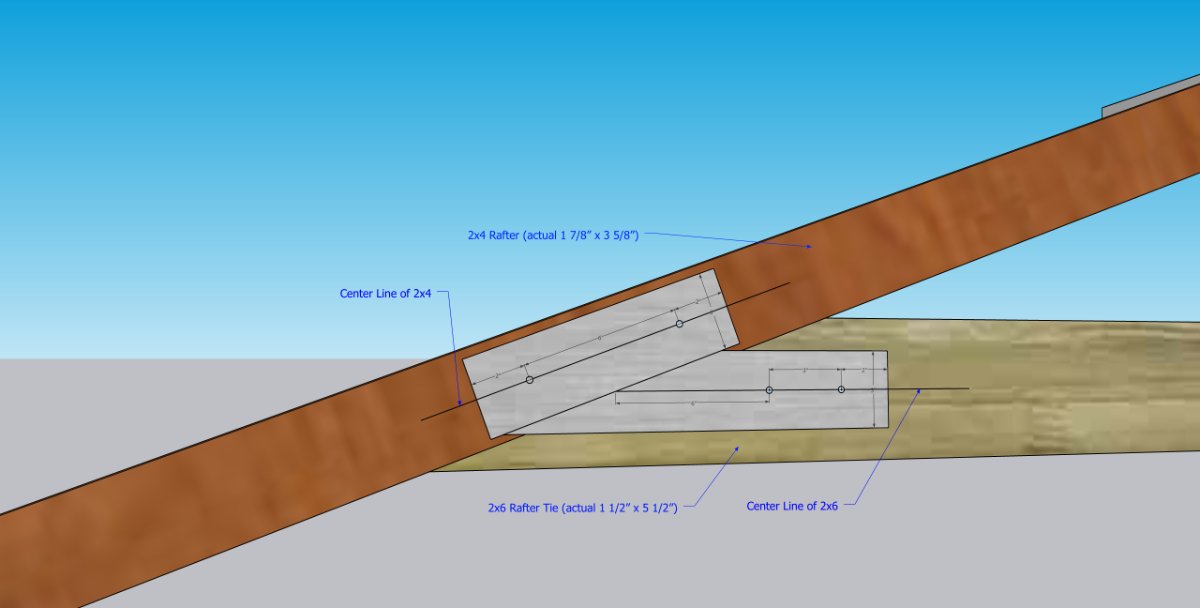 There were 2 horizontal rafter ties, and 2 diagonal rafter ties.