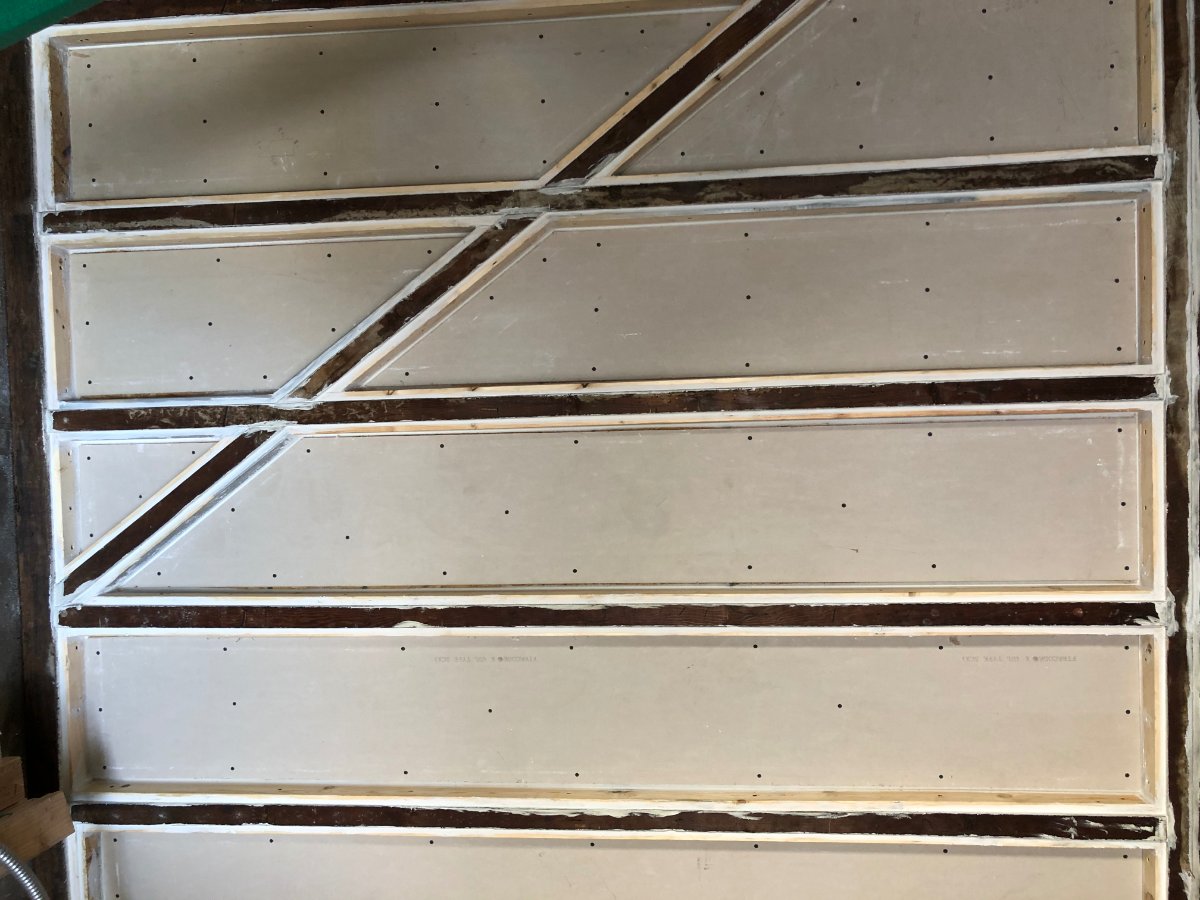 First step is to beef up the existing outer leaf. This took the most amount of time. It was extremely tedious to cut the OSB and drywall into the proper sizes and shapes because of the diagonal bracing of the existing frame. Cutting the cleats to those exact angles was a pain in the ass, but it looks great, and feels super solid.