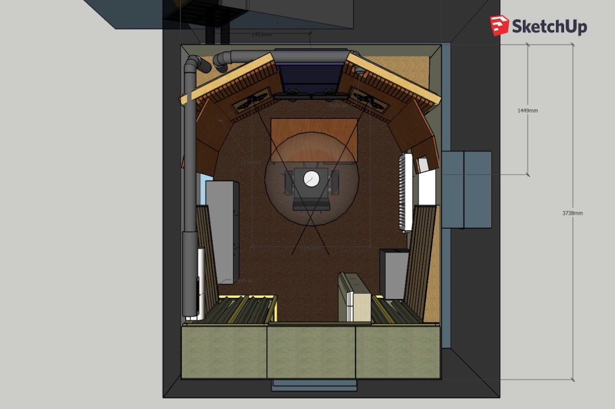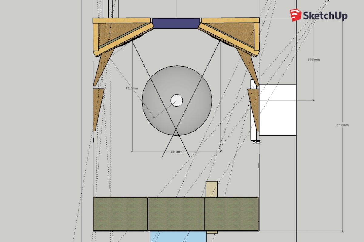 What is not shown is 30cm porous absorber I am thinking as ceiling treatment.