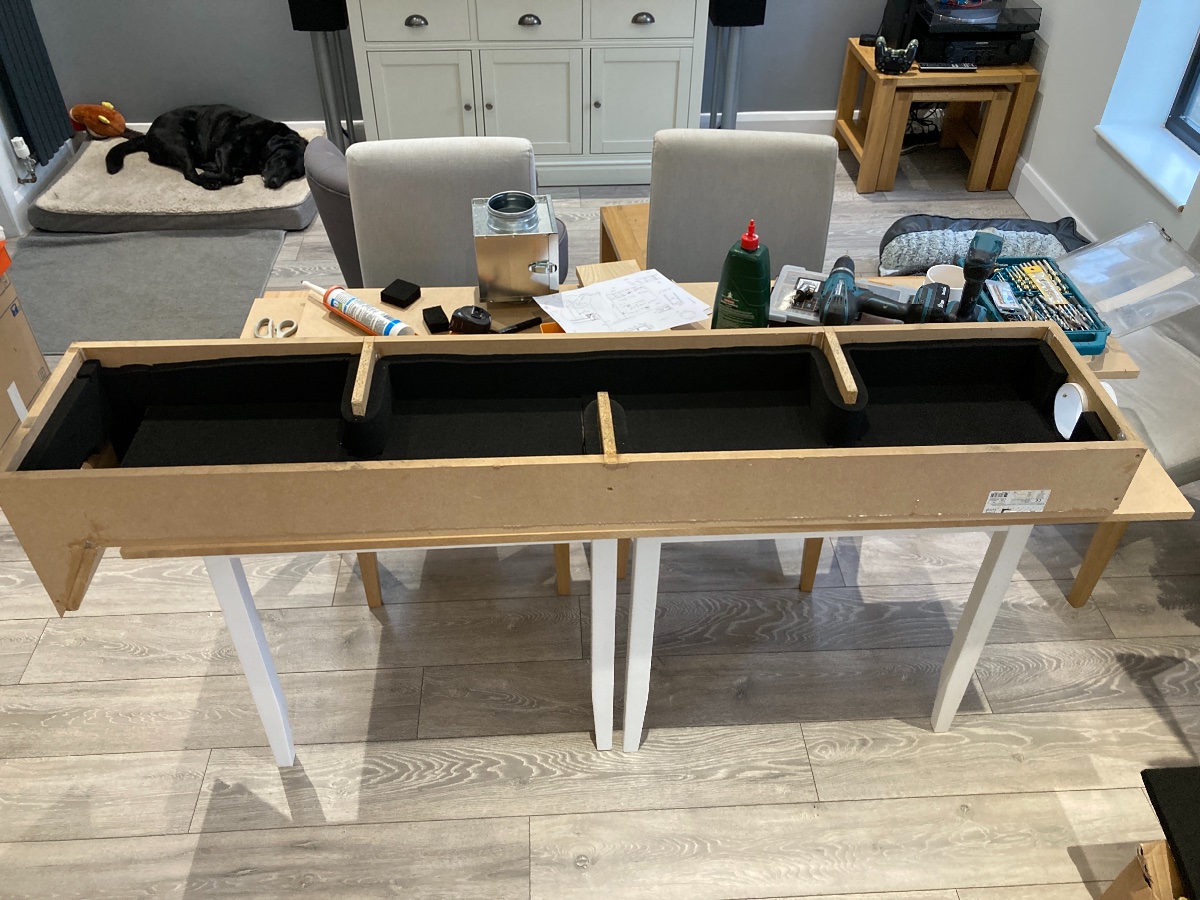 I took the time to test the fan worked before storing this all for use in a few weeks time. The inside leaf silencers will have a larger area and larger outlets in order to slow the air down.