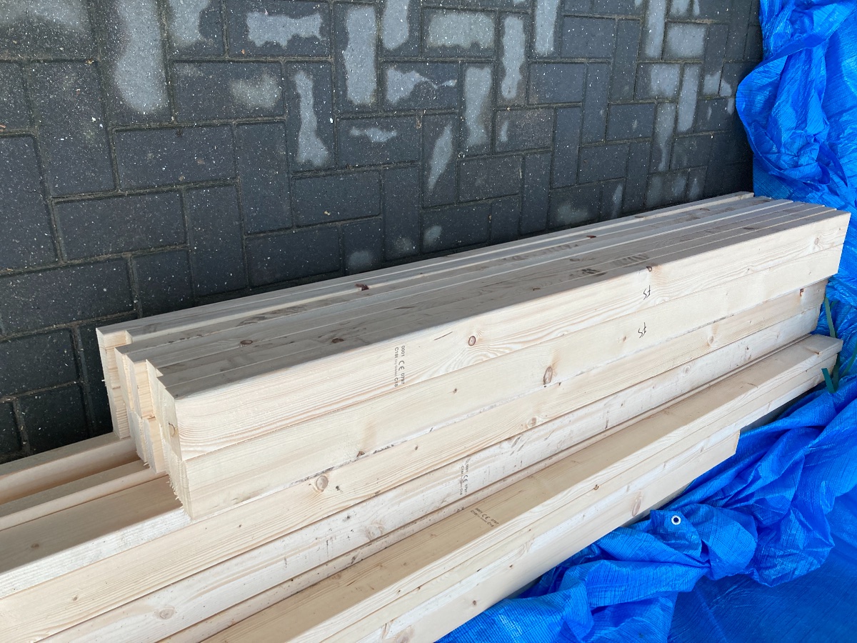 I spent a few days this week marking up and cutting wood for the outside wall frames, and then assembled them on Christmas Eve.