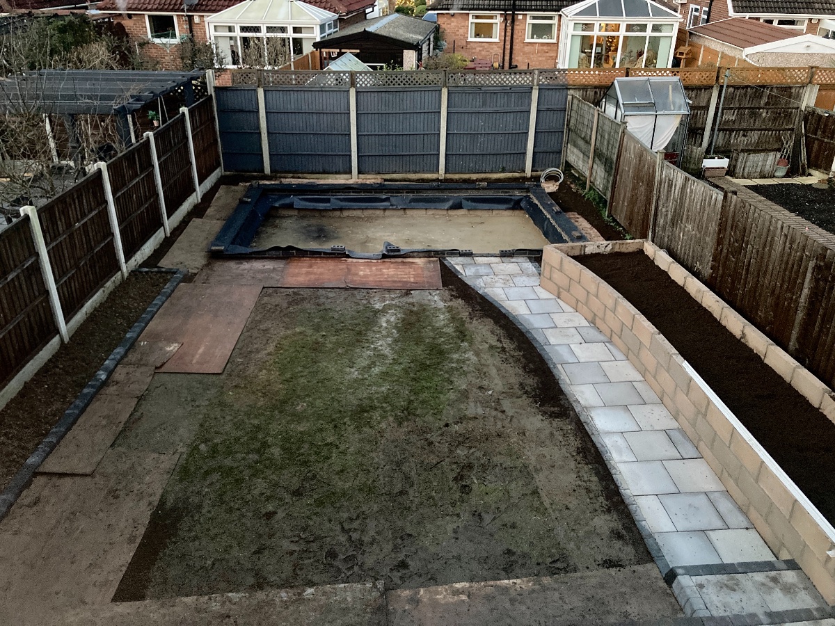 Tomorrow the bricklayers add bricks to the top of the concrete blocks and Monday the perimeter of the concrete is back filled with gravel to make french drain. After that it’s on with the framing and OSB, weather dependent. It is England after all