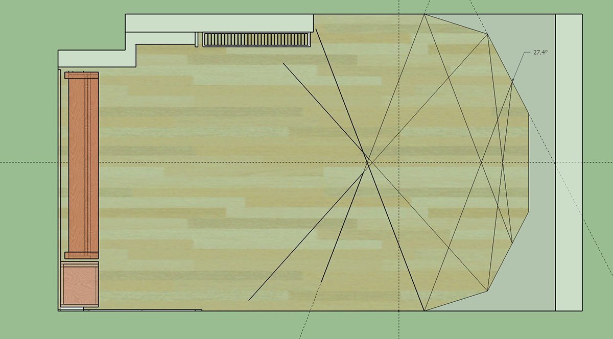 So I used amray (https://amcoustics.com/tools/amray) for a general view of all the 1st reflections (the pics w/ all the blue lines - very rough as you have to trace lines over a top-down 2d export of your design), made a note of all the ones closest to the head then went into Sketchup and calculated the closest reflections w/ the protractor tool