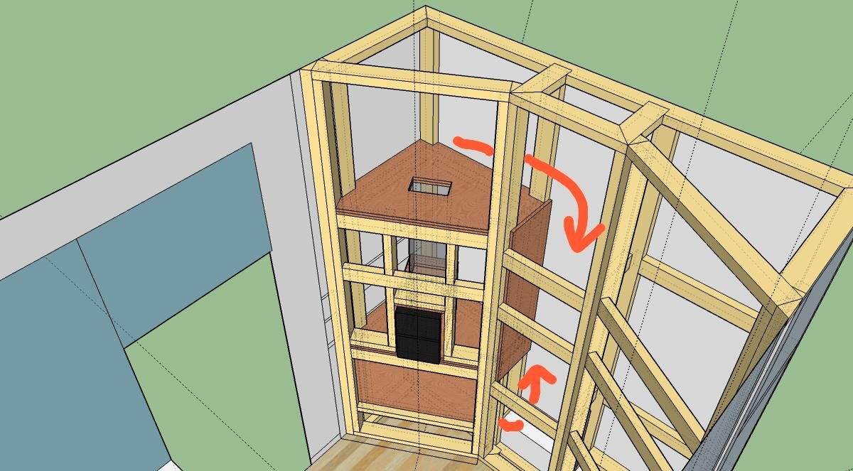 Here's the left soffit (just base & king studs, no inner studs, baffle, panels etc yet):