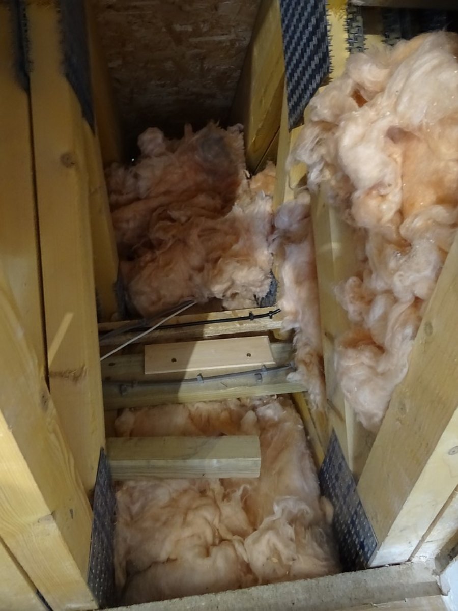 Some cable tidying and securing. I attached a wooden "pad" near the cables to stop them getting crushed if the trap was somehow to fall off the wall.
