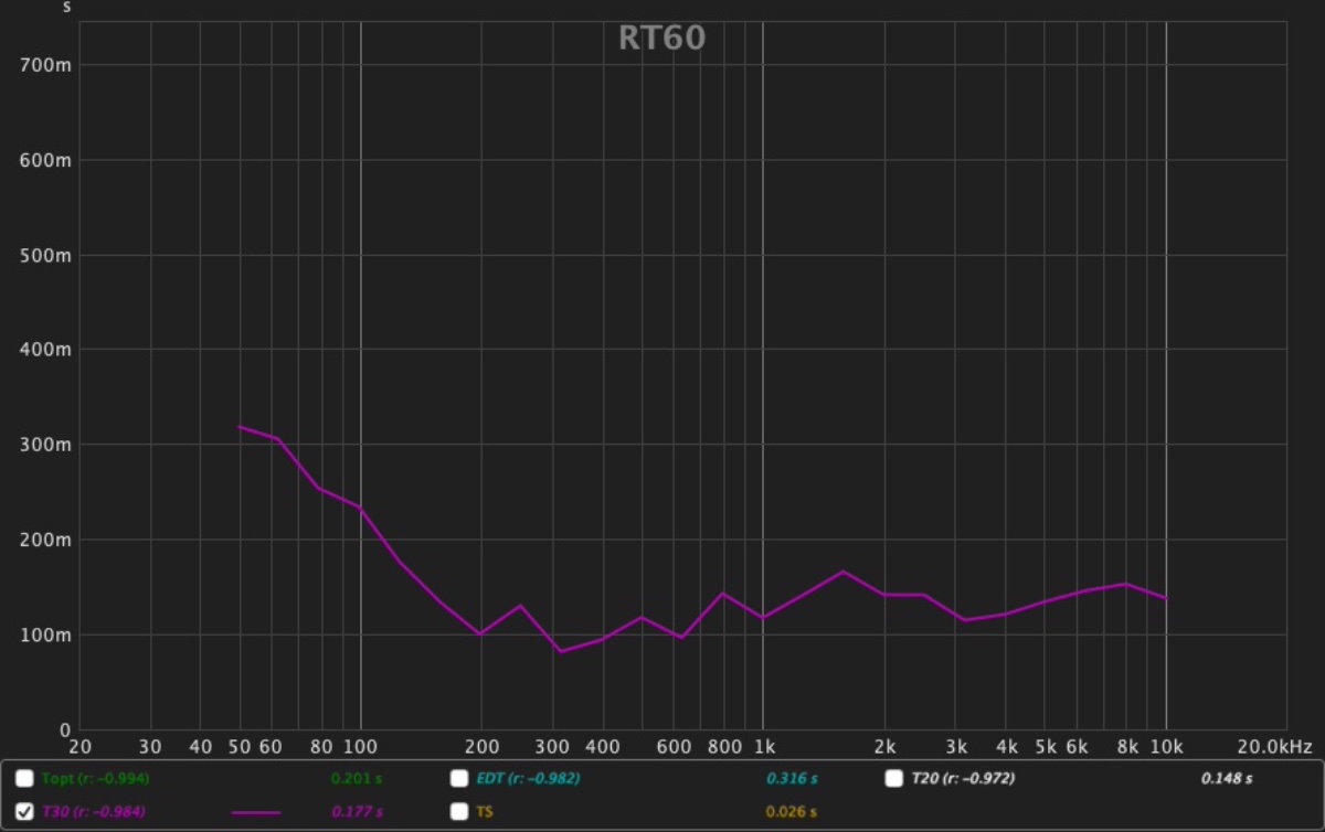 This is more of a semantics issue: For small rooms, the measurements should more correctly be called "decay times", rather than "Reverberation Times". Even though small rooms do not have reverberant fields that decay over time, they still do exhibit just plain old "decay". In other words, the sound levels for each frequency band diminish over time, just as they do in a large room. The issue isn't that decay doesn't occur: clearly, it does! The issue is that, technically, it cannot be called "RT" (Reveberation Time), because there is no statistical reverberation time in small rooms. So what is "decaying" in small rooms is not a true reverberant field: just the sound level. In fact, the final outcome is the same: sound levels decay over time, at different rates! So the issue is really about what to call it, from a technical point of view. The only real difference, from a pure acoustics point of view, is that you can't validly use the statistical analysis tools to analyze what is going on... but you can still use the rest of acosutic theory to understand the issues, and to design treatment for them.I am aware about the invalidity of rt60 in small spaces but rew actually measures rt30 but it still names it rt60. Do all these designers mean t30 also?