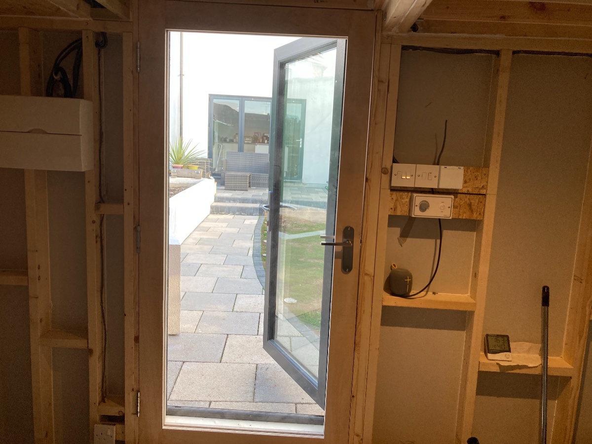 After that I started fitting the door stops to the frame, which are 20mm thick wood with sticky back foam on the edge to give a seal with the door. Did the bottom and one side today and will do the top and other side tomorrow.