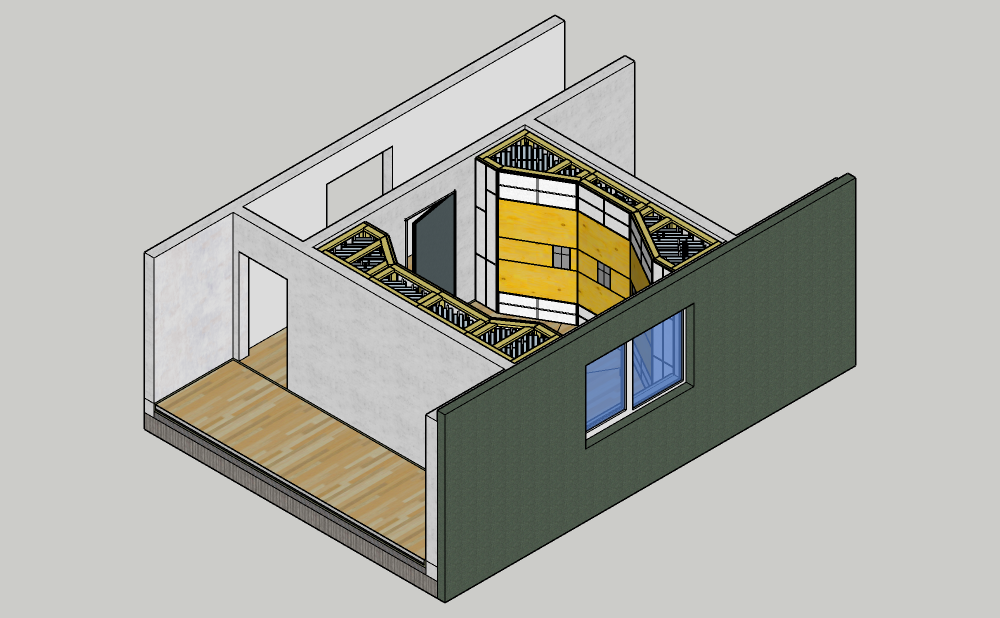 The whole construction thing is totally new to me and I've absolutely no experience in framing. I've done some woodwork in the past (I've build some studio furniture), but building this room will be a total ne level for me. I've read a ton of material and watched countless videos regarding this topic, but I guess experience beats knowledge in this case. Never the less did I try to avoid basic mistakes, hopefully. Since we have a woodworking shop at my dayjob (to build prototypes of speaker cabinets), I have access to some expensive tools and even to a 2 x 1 m wood CNC cutter. So, dealing with complex shapes can be easy if I've done everything right acoustically. For all the connection points of the framework I'll use filling compound to prevent the structure from creaking and making resonant noises.