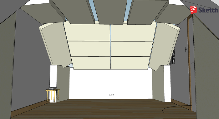 looks like the absorption will have to extend quite close to the soffits. Back wall will be absorbant so no worries there.
