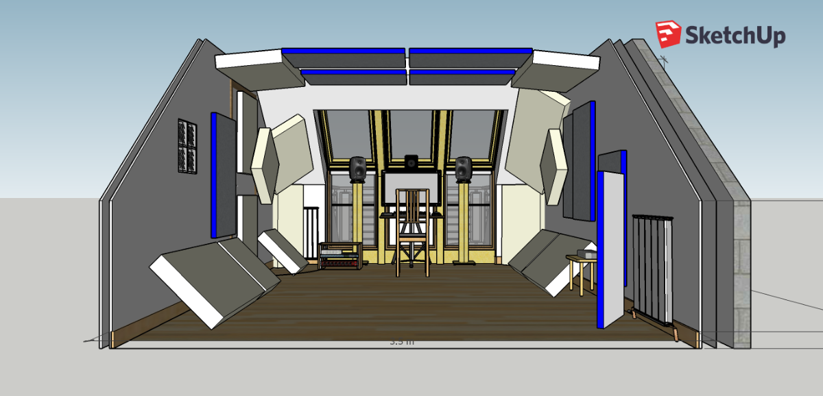 I've been visiting several well know acoustics forums for years, and studied them and some written literature intently before designing my studio in 2015. I planned it to the best of my ability at the time and built a significant number of DIY bass traps. Those and some thinner panels from my previous apartment room studio formed the bulk of the acoustic treatment. A friend with considerable expertise helped with the final positioning and optimizing of the panels.