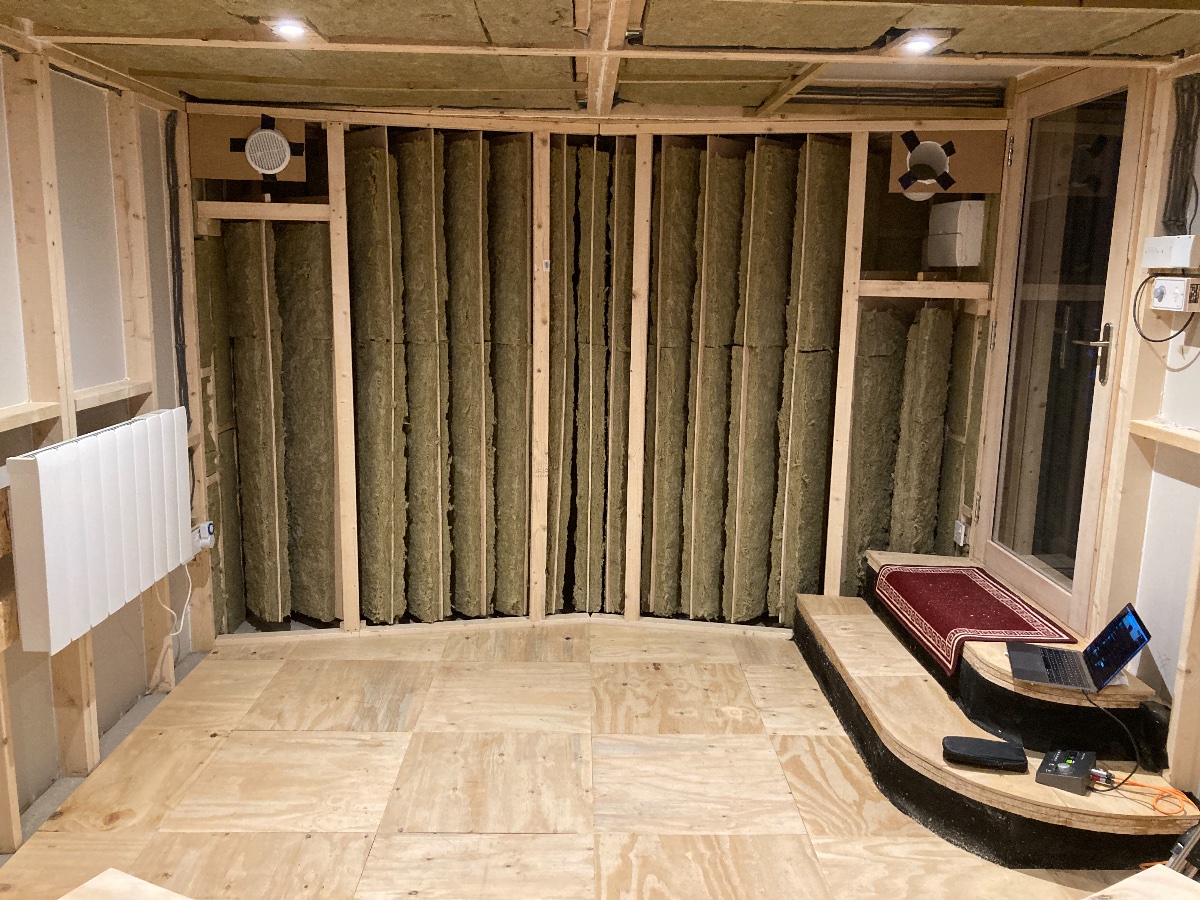 I’m nearly there with it but ran out of spray glue and ducting for my air intake so I’ll have to put the last two in tomorrow eve. At that point I’m emptying the room and doing another REW test and also getting it clean enough to use as a studio with a client/friend on Friday!